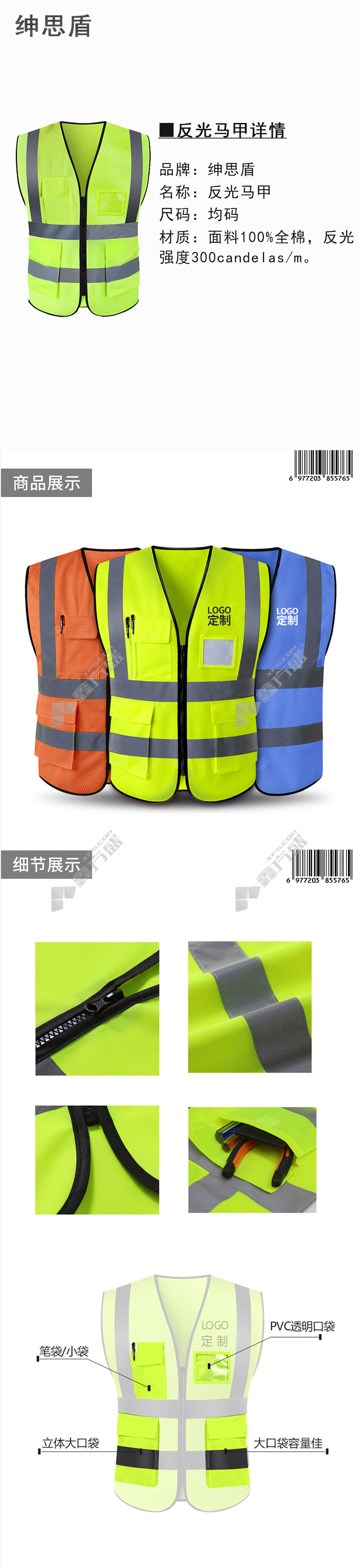 sensidian pure cotton reflective vest SBP-16 multiple colors without specifications