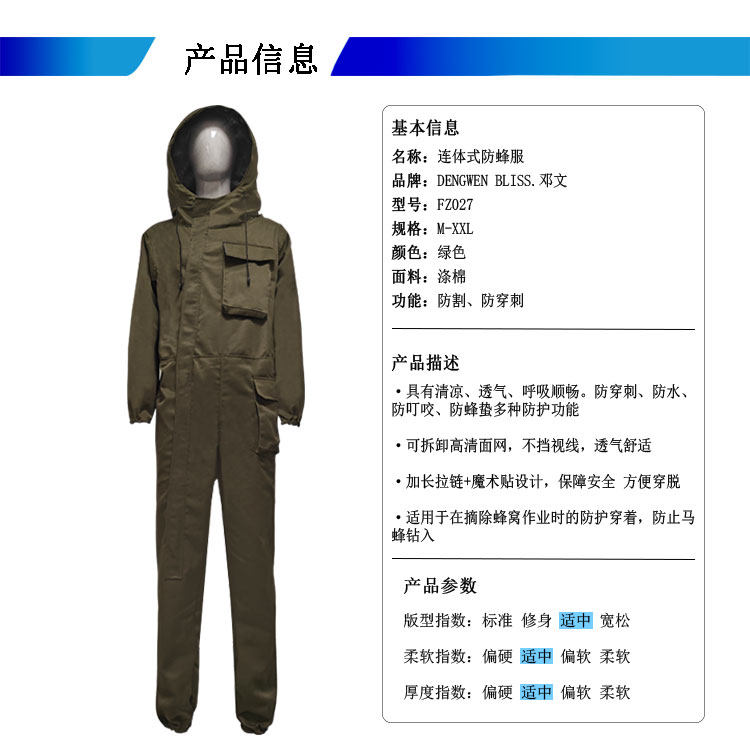 DENGWEN BLISS. deng wen one-piece anti-bee suit FZ027 XL( unit: pieces) FZ027 no specifications
