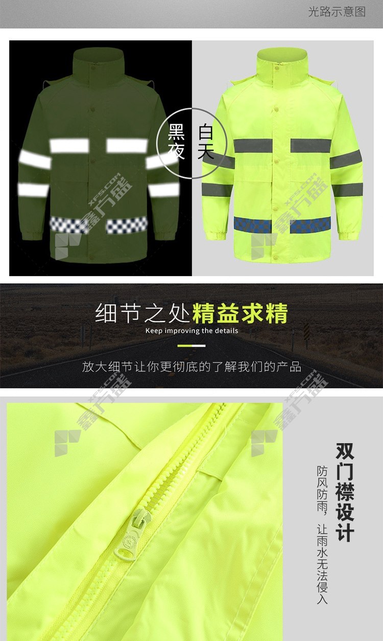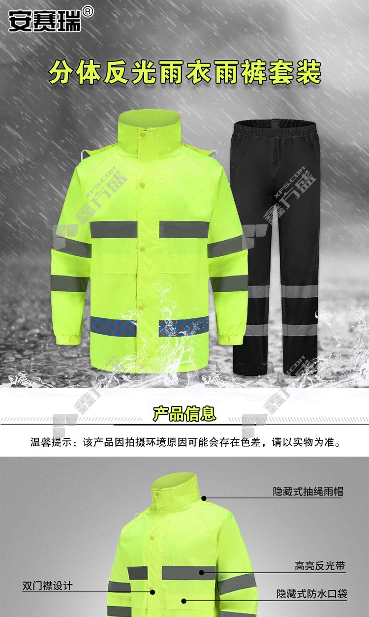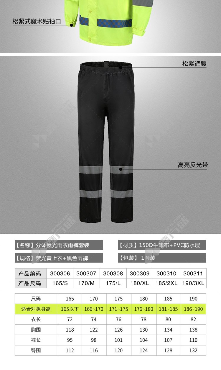ansery fluorescent yellow +blacksplit reflective raincoat suit 300309 180code fluorescent yellow +black 300306/165code /fluorescent yellow +black