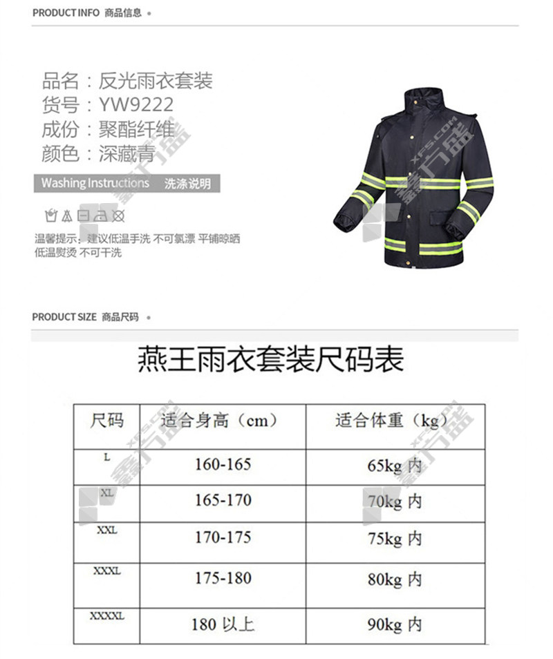 yanwang 9222 safety flood-proof men's and women's separate luminous raincoat suit 9222 dark navy XXL 9222 deep navy blue /L