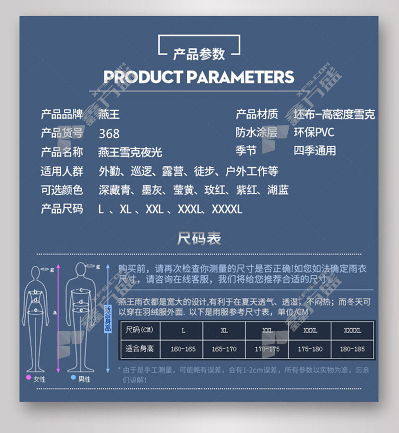 yanwang 368 men's and women's double layer split snowflake reflective raincoat set 368 dark navy XL 368 deep navy blue /X