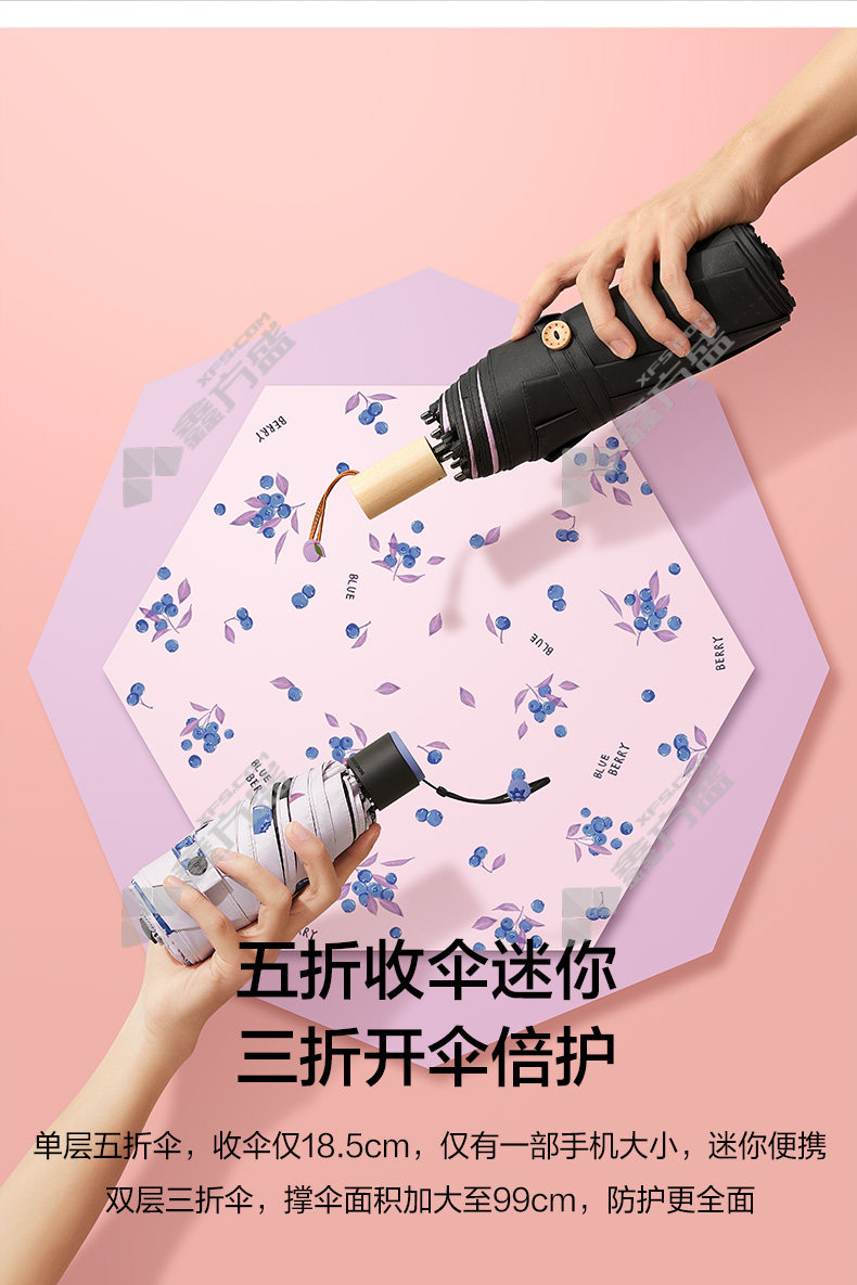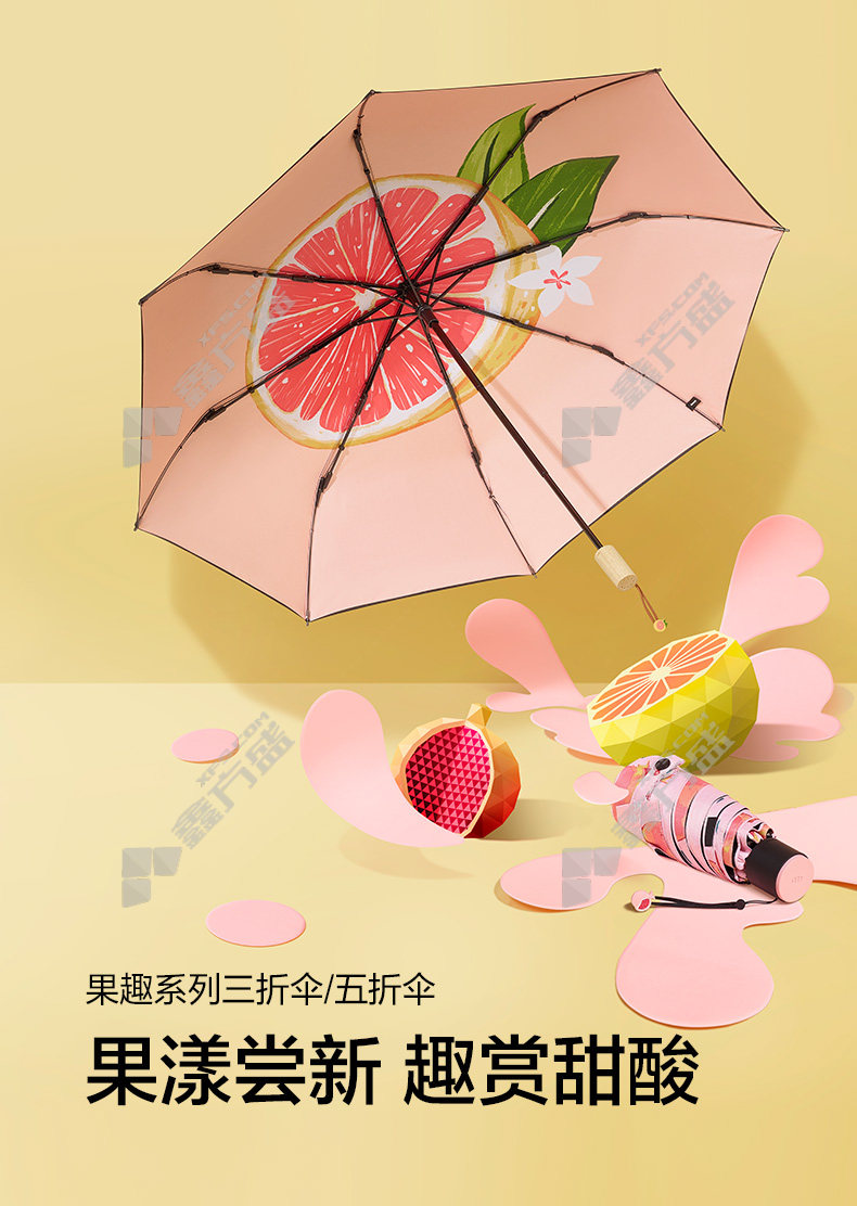 banana under 20 BU fruity series three-fold umbrella peach 99 cm×6K peach /99cm×6K