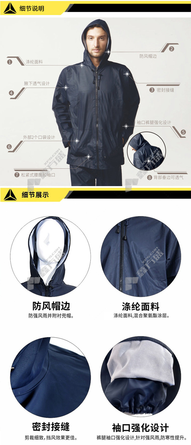 delta polyester raincoat suit with fluorescent strips XL navy blue 407004 M/navy blue /407004