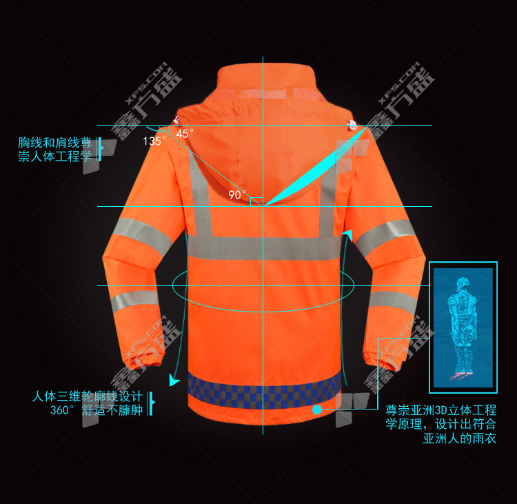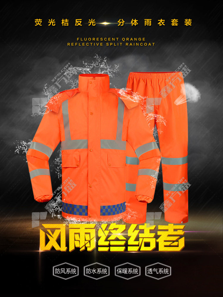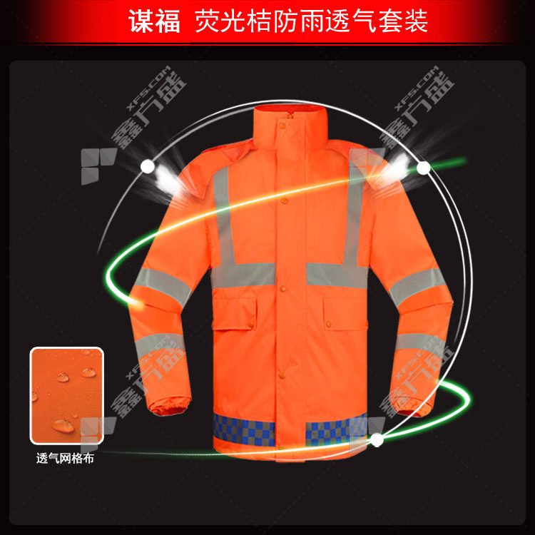 mofu 9295 fluorescent orange safety reflective split raincoat M fluorescent orange M/fluorescent orange