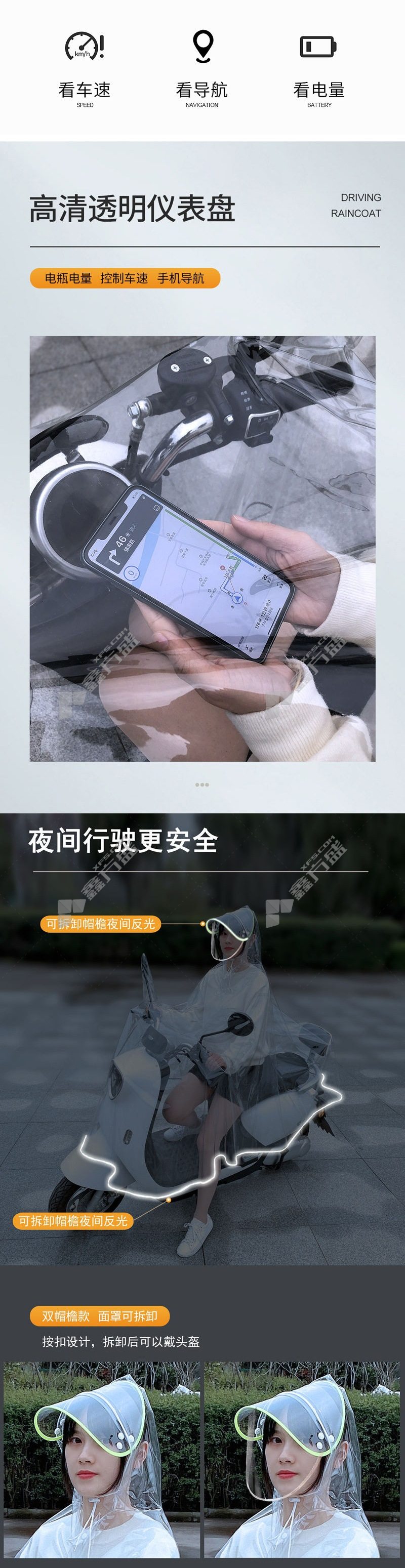 moufu battery bike cycling thickened raincoat one size snow powder one size /matte white