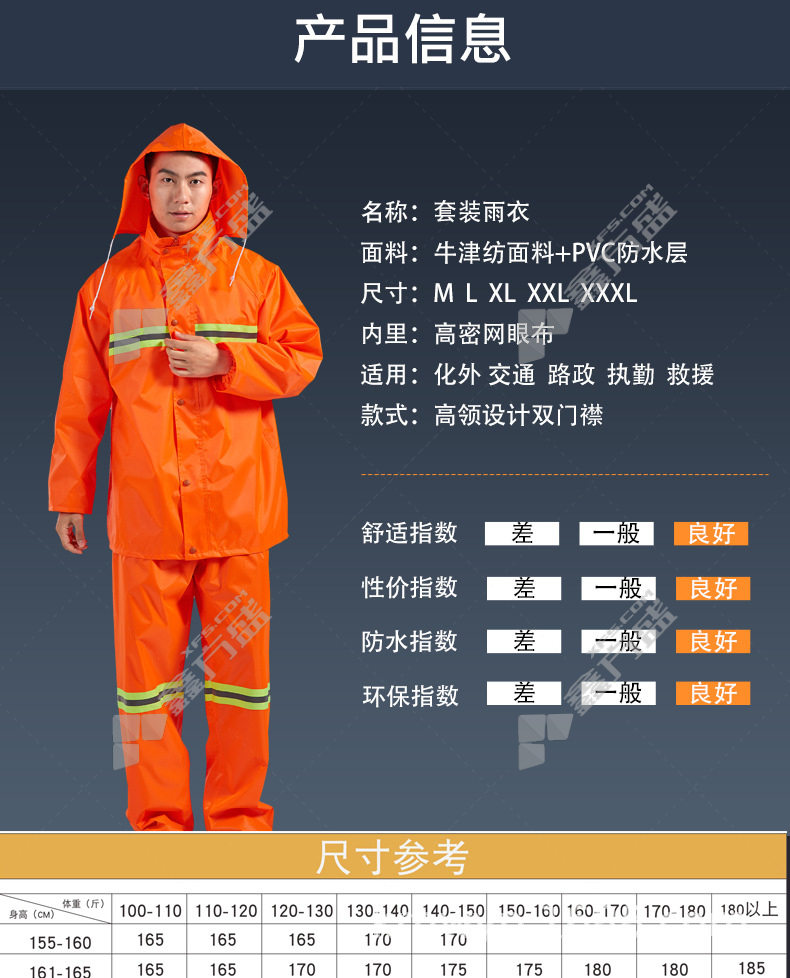 moufu labor insurance split reflective raincoat and rain pants set 970 3 XL orange 970 /M/orange