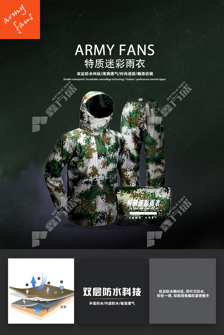 mofu reflective type with brimcamouflagesplit raincoat and rain pants set 60 4 XL camouflage 60/L/camouflage