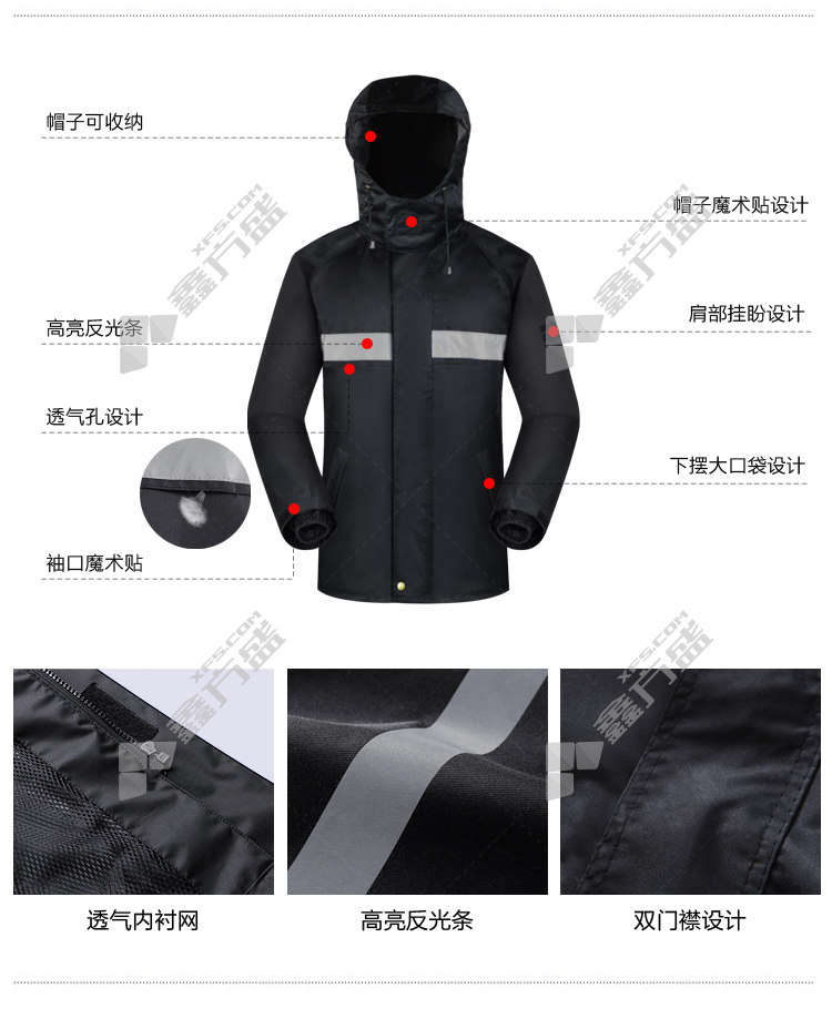 moufu 8925 new split reflective raincoat suit 8925 3 XL code black 8925 /M code black