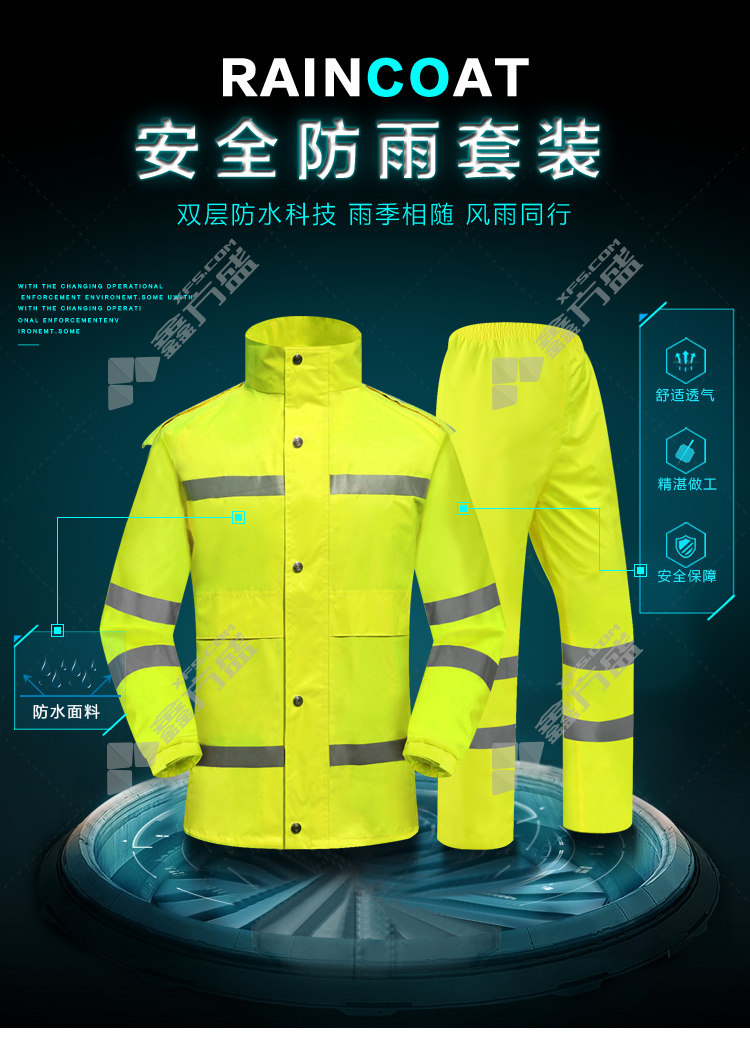 moufu 8012 split reflective raincoat suit YGH01 M code fluorescent yellow YGH01/M code /fluorescent yellow