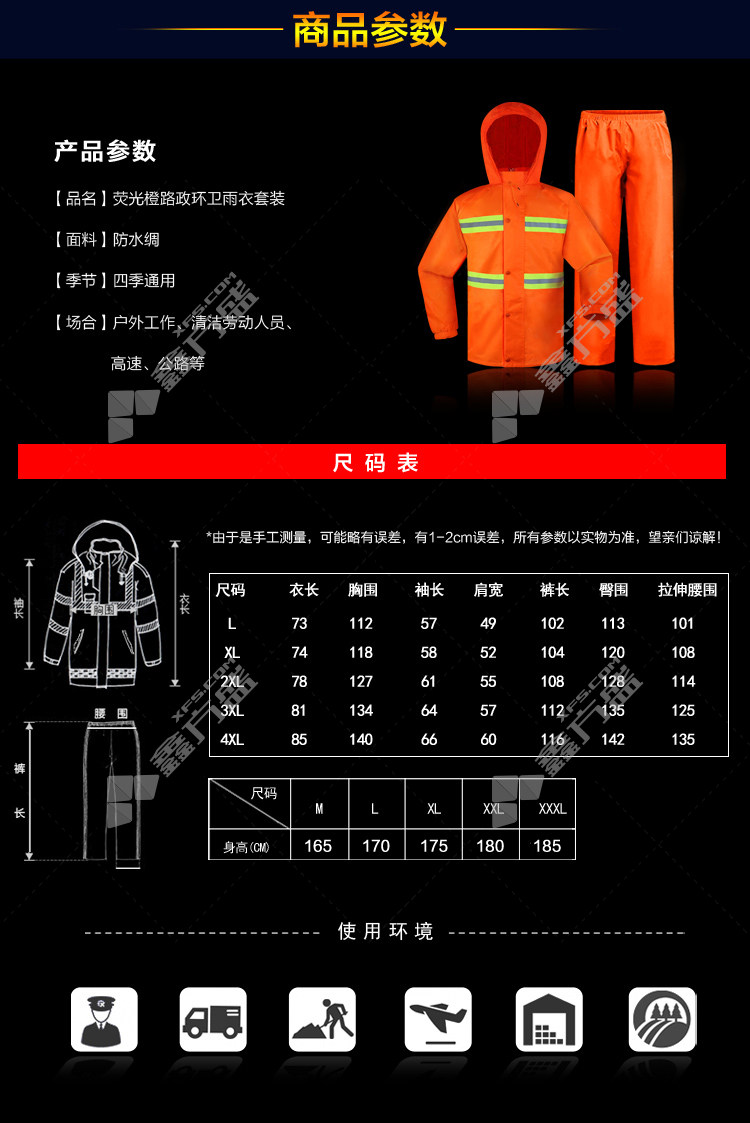 mofu 80132 split reflective road sanitation raincoat set YGC03 L code fluorescent orange YGC03/M code /fluorescent orange