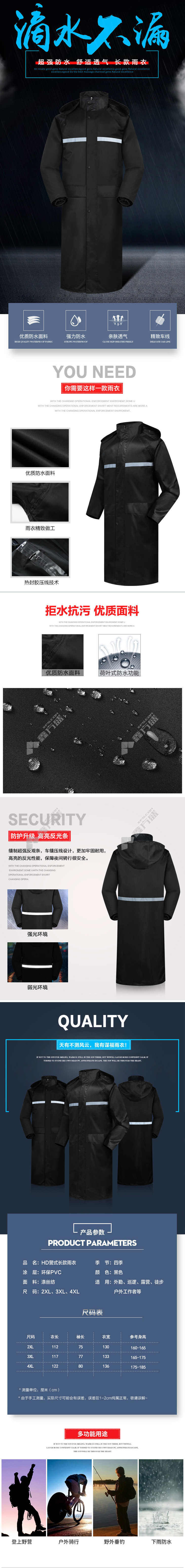 moufu 8017 long one-piece windbreaker style raincoat 8017 2 XL code black 8017/2XL code /black