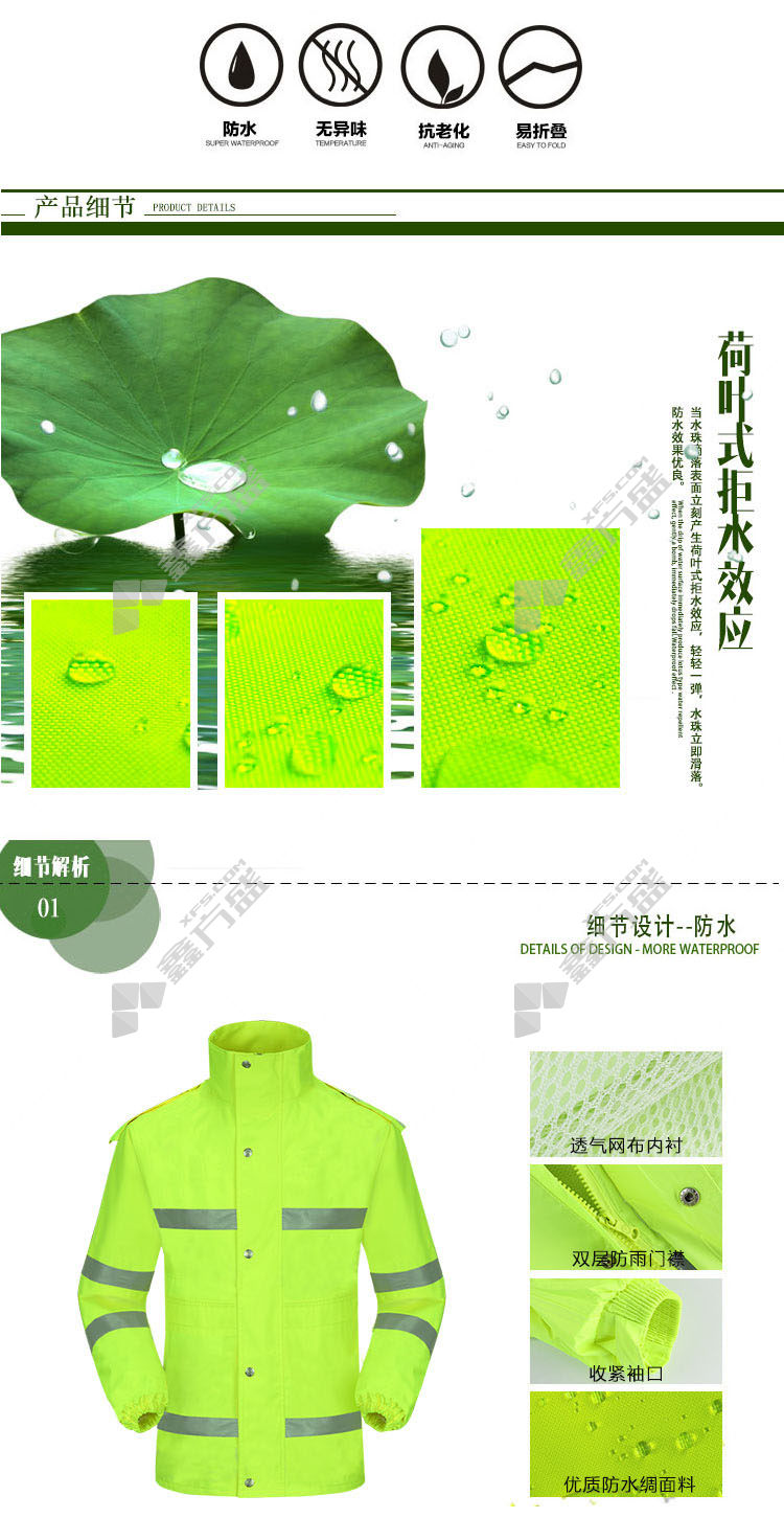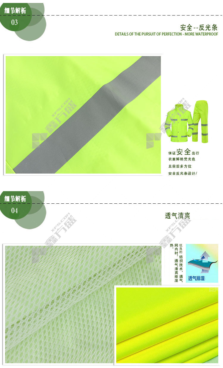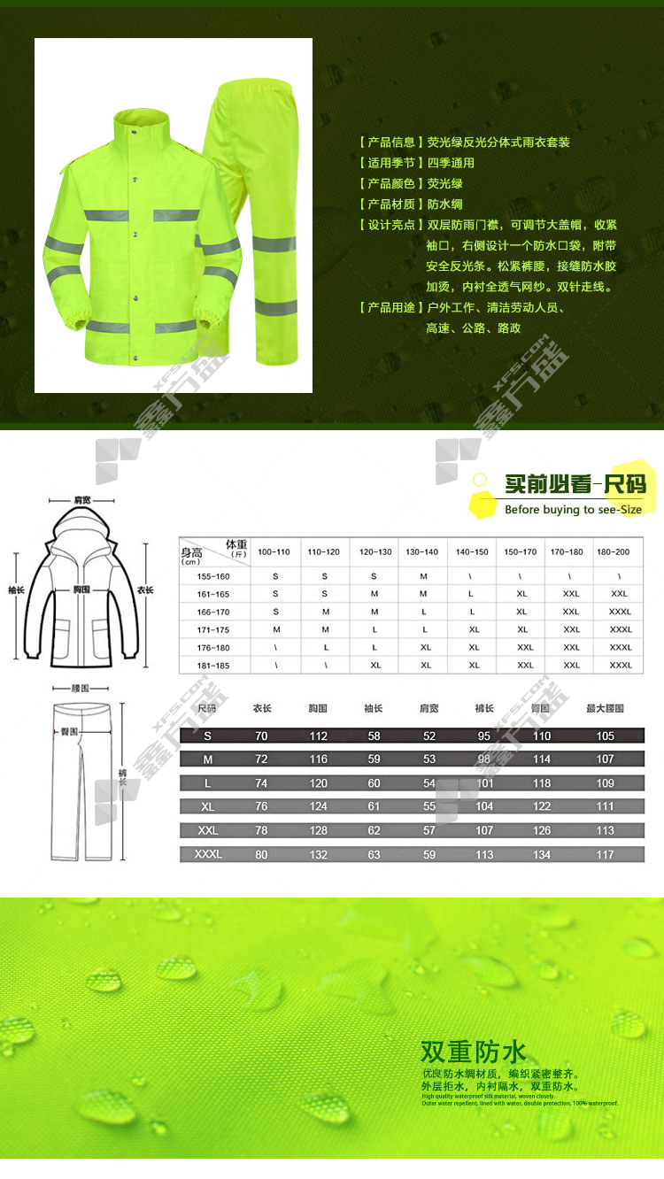 moufu 8029 split reflective raincoat suit YGJ01 3XL code fluorescent orange YGJ01/M code /fluorescent orange