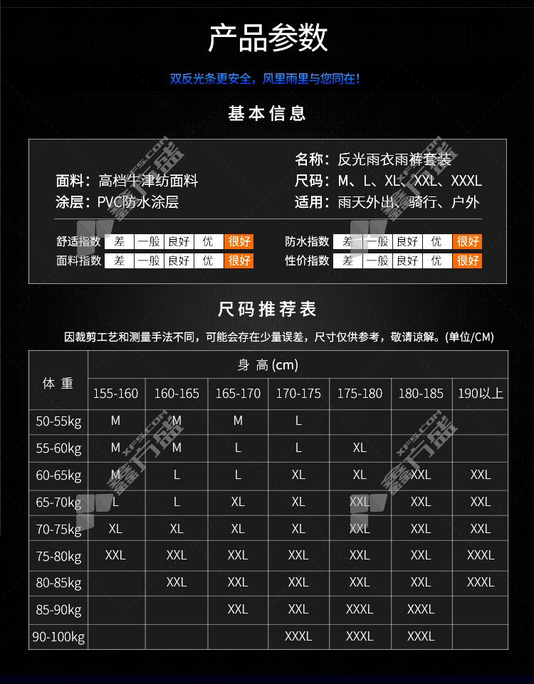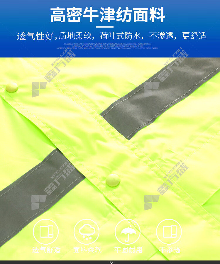 moufu cycling security duty reflective raincoat and rain pants set 2 XL fluorescent green M/fluorescent green