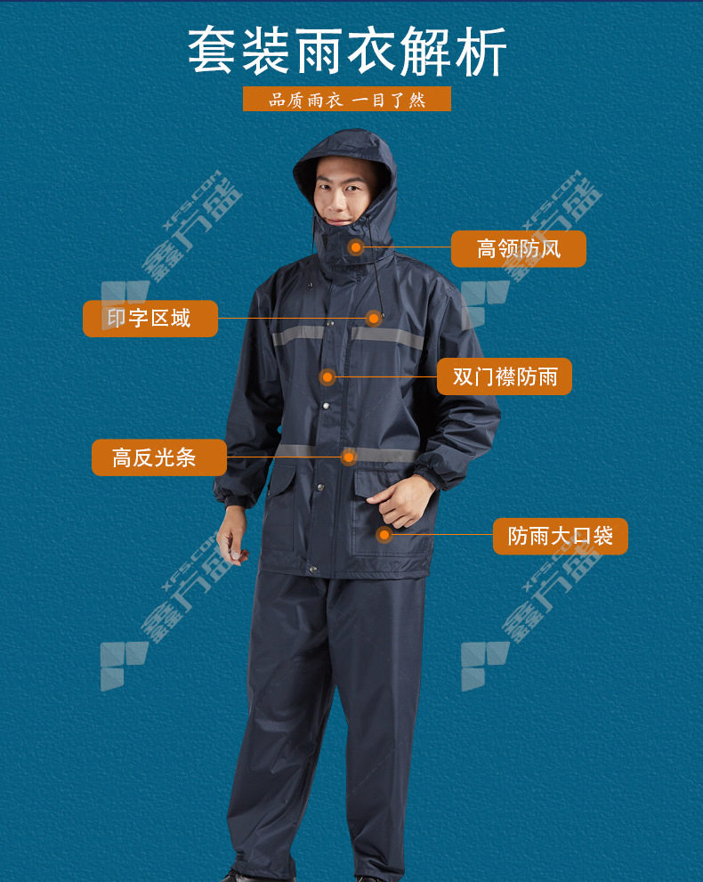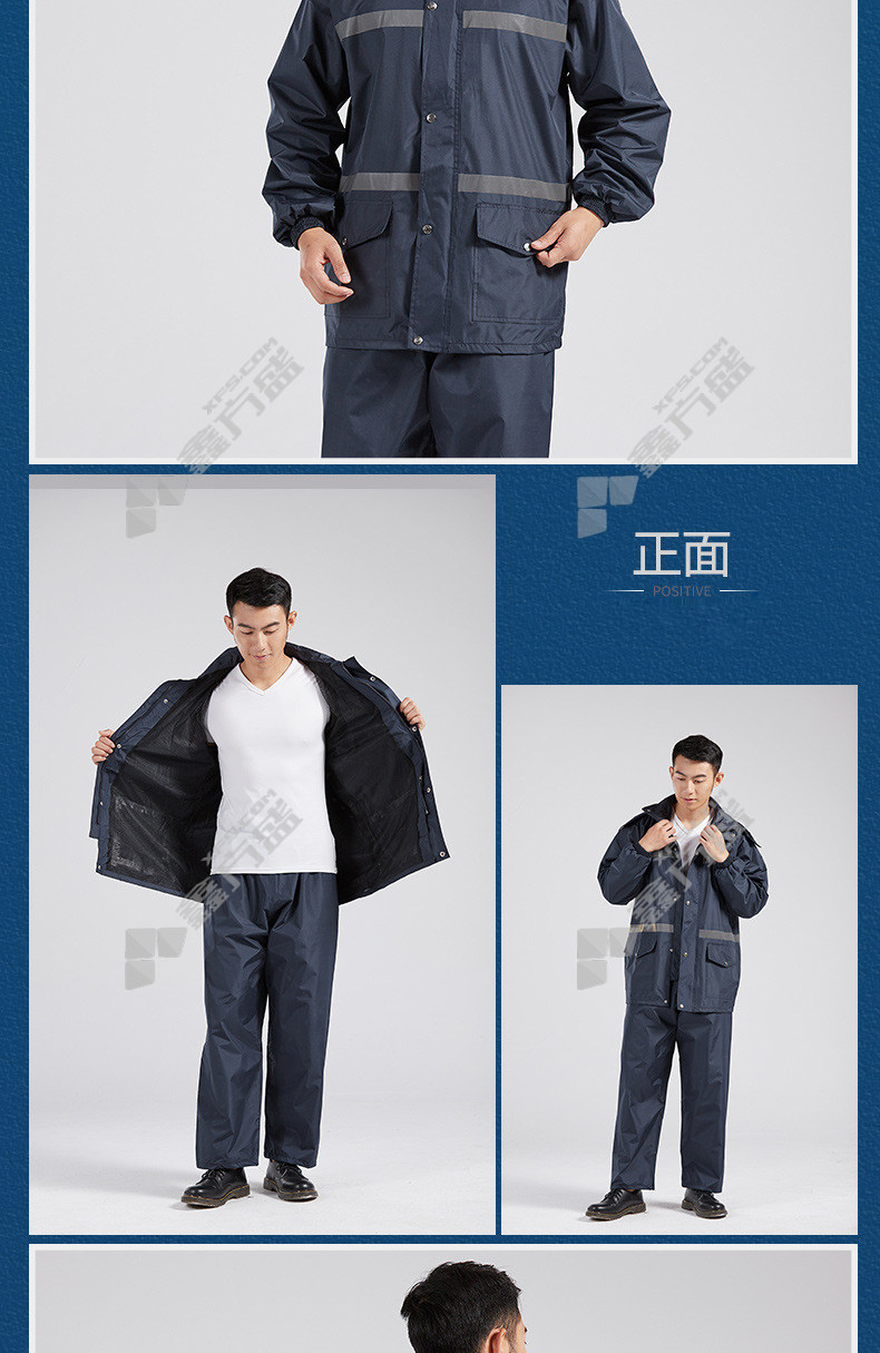 moufu 969 pongee reflective split raincoat L navy blue M/navy blue
