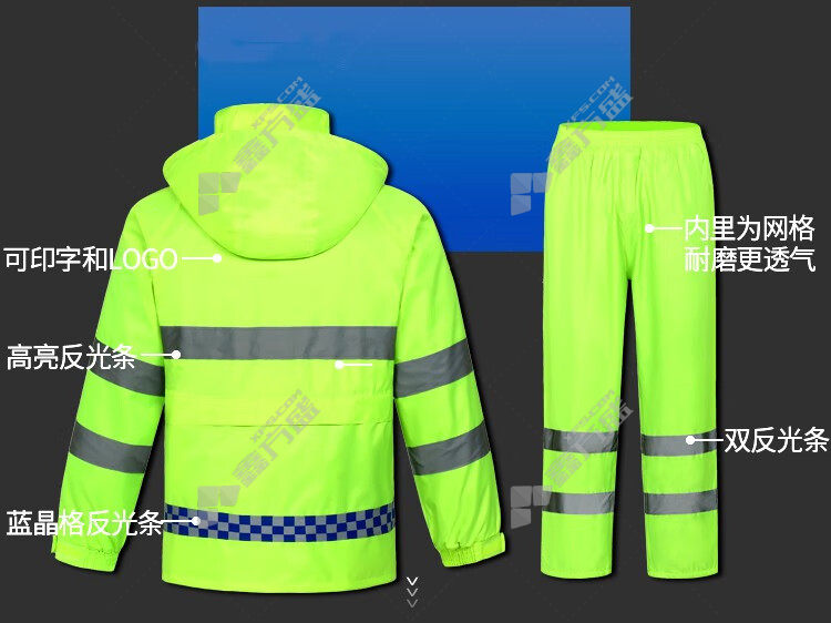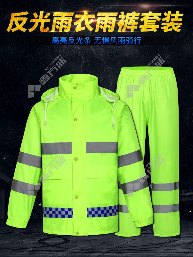 moufu cycling security duty reflective raincoat and rain pants set XL fluorescent green M/fluorescent green