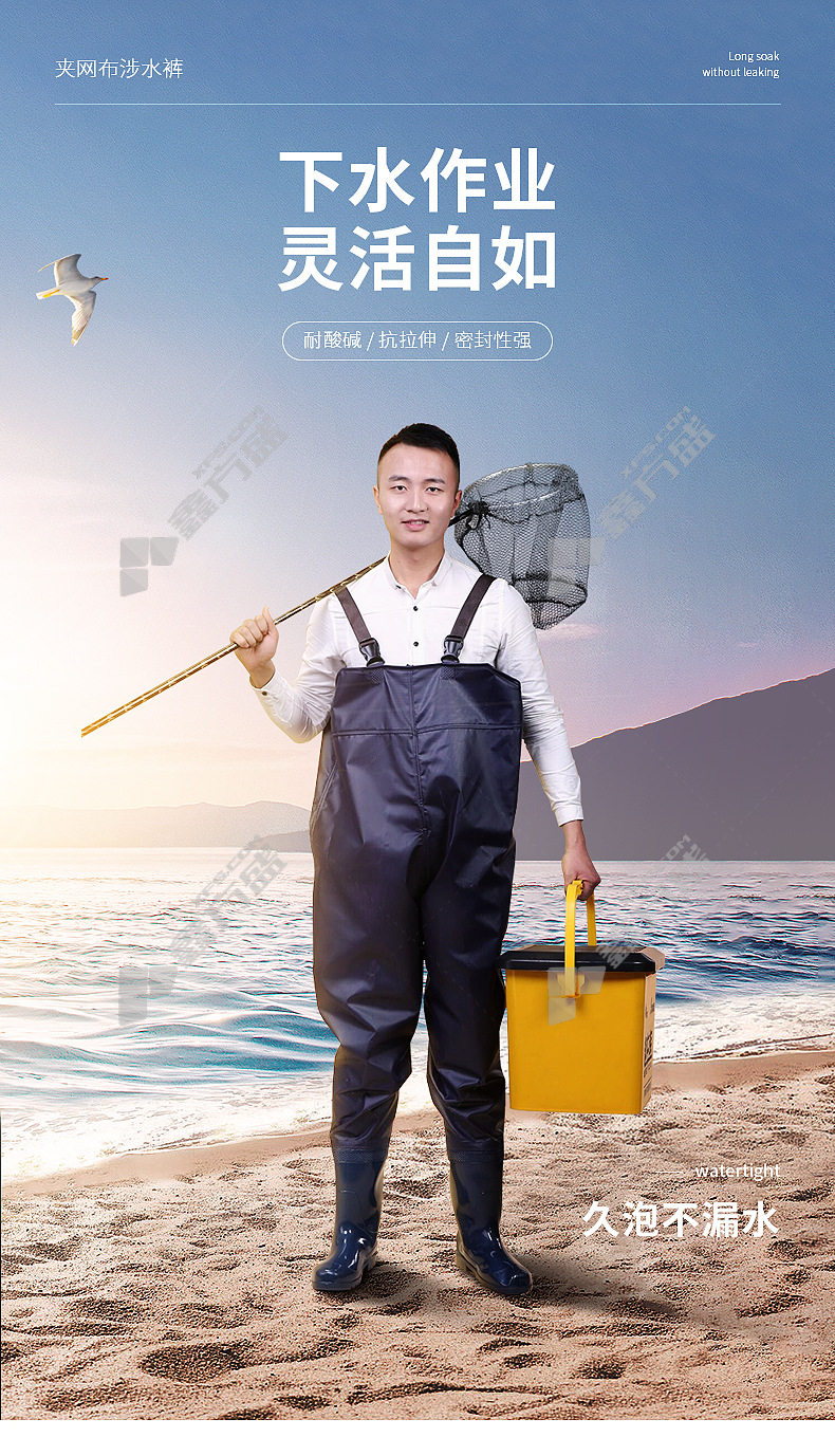 moufu 65 silk mesh fabric built-in pocket half-length outdoor waders 98952 42code black 98952/38code /black
