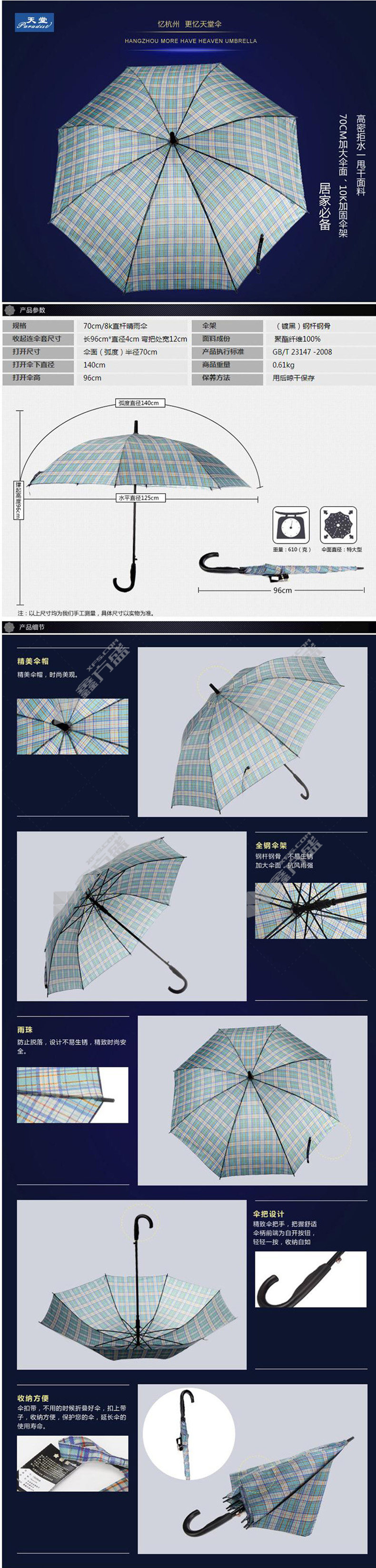 heaven Paradise straight rib umbrella style 170 E 70cm×10K 13008E/70cm×8K