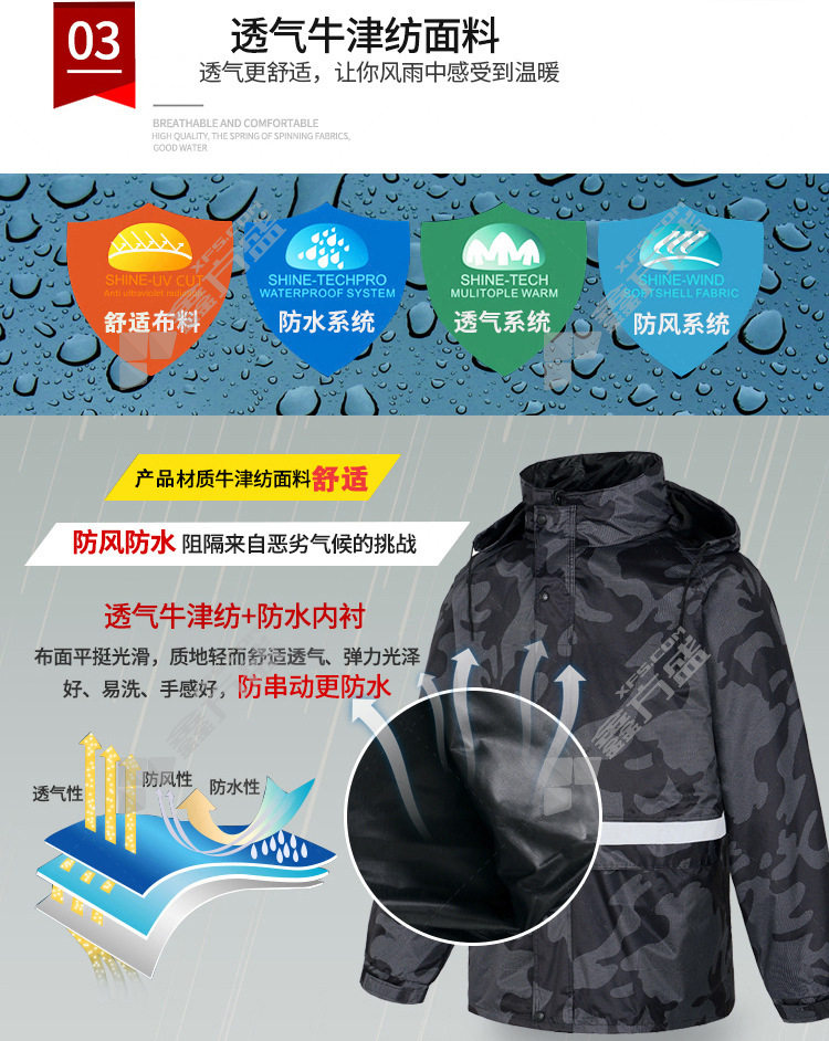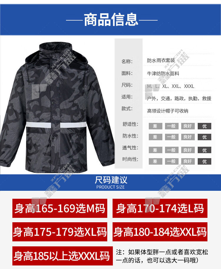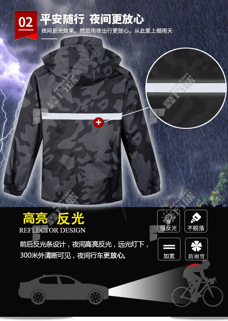 seek fortune W01camouflagesplit raincoat and rain pants set 4 XL camouflage M/camouflage