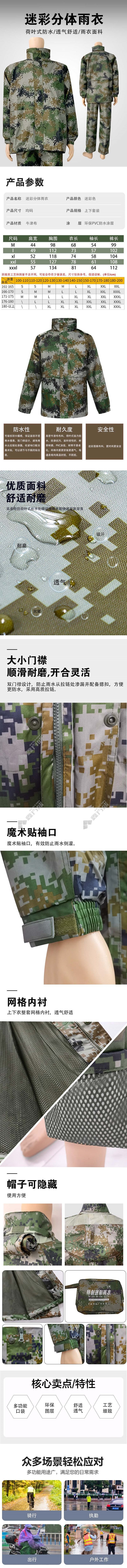 tianyizhou split camouflage mesh lined raincoat single suit L code-165camouflage green TYZ-FT01 L code-165 /camouflage green /TYZ-FT01