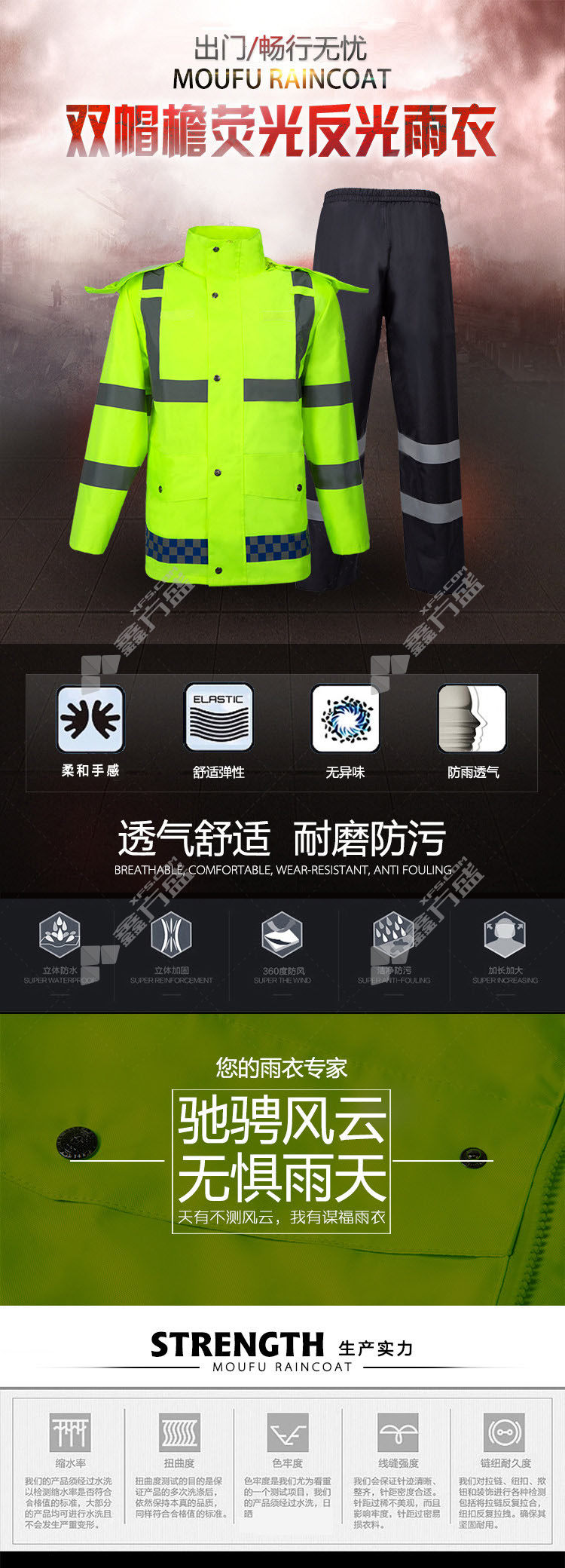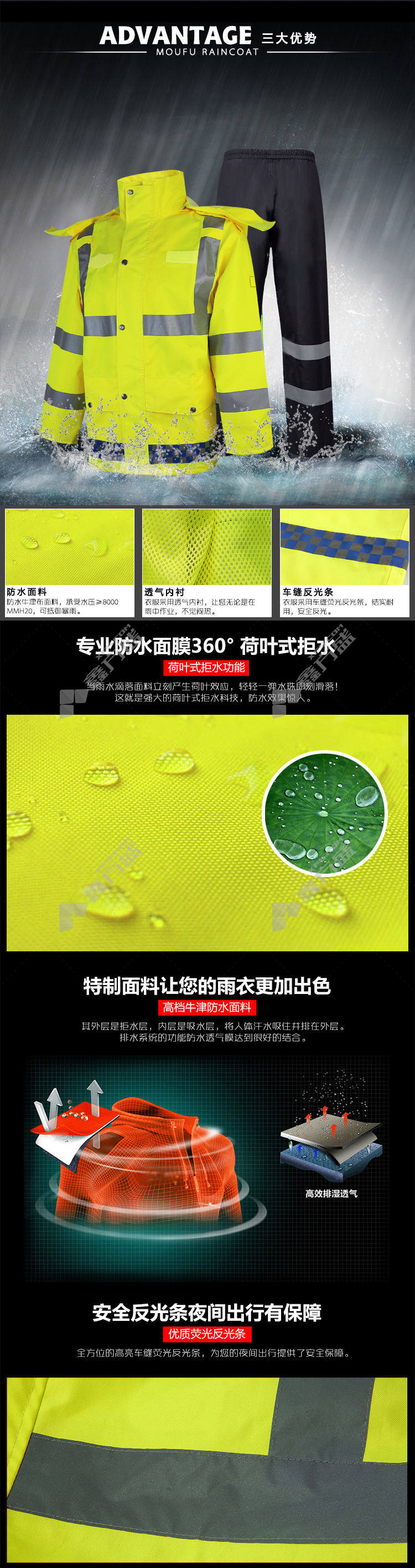 mofu split raincoat and rain pants suit 175 yards fluorescent black 160 yards /fluorescent black