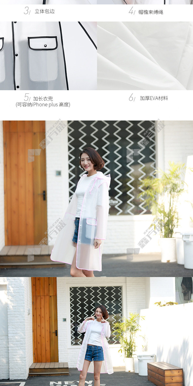 seek fortune EVA one size fits all hemmed transparent raincoat black hemmed one size fits all /pink hemming