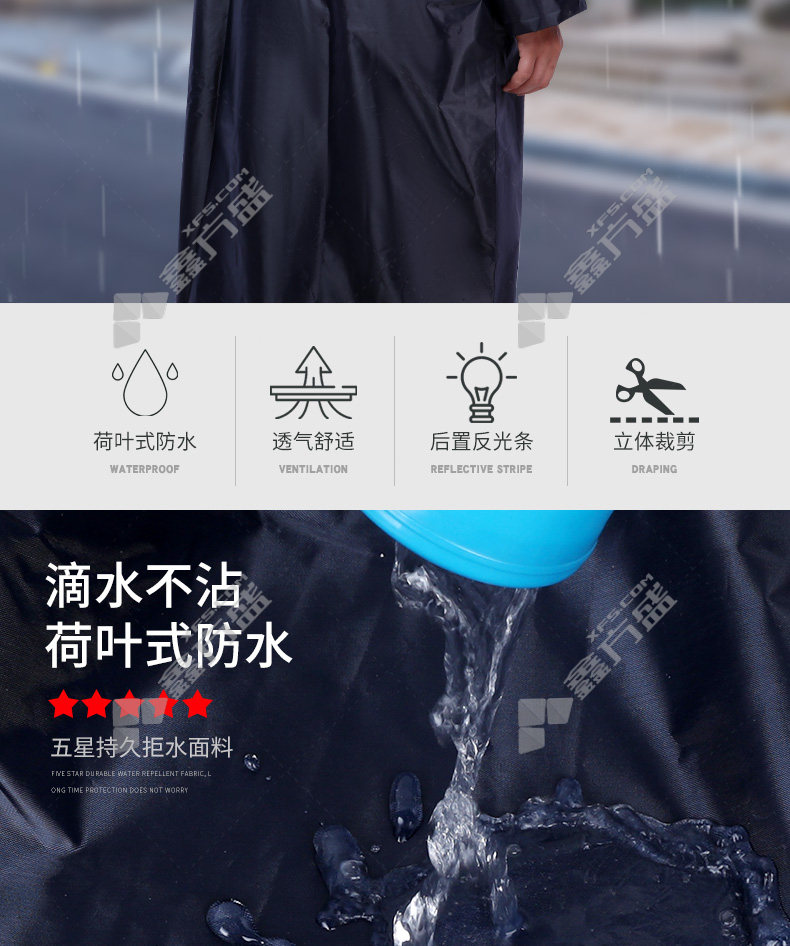 junyu long raincoat with reflective strips large size navy blue long extra large /navy blue /long style