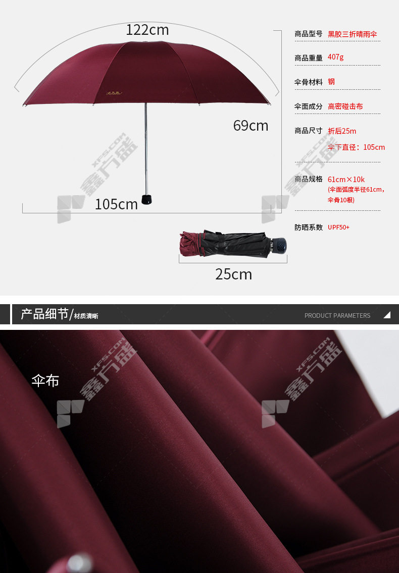 paradise impact vinyl three-fold umbrella 33188 E diameter 122 cm×10K no specifications