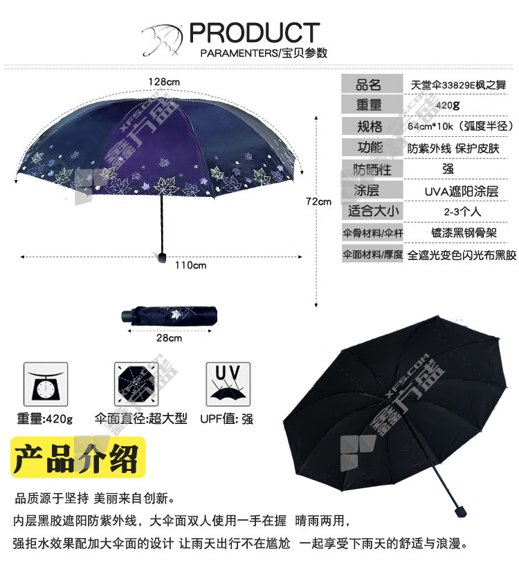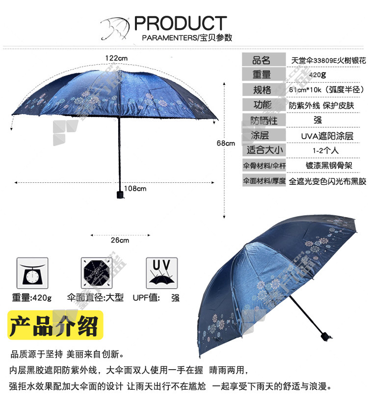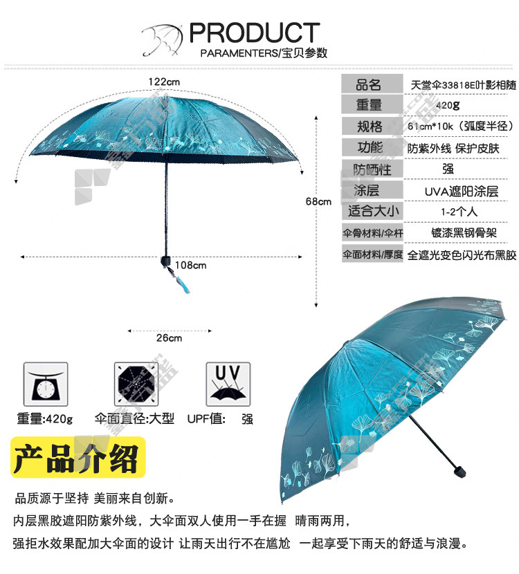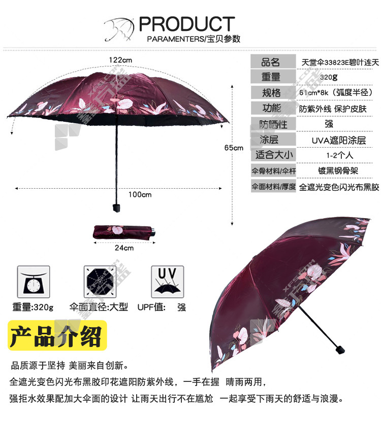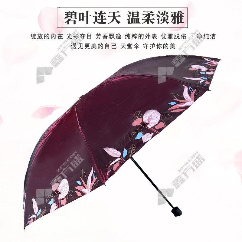 paradise green leaves continuous sky black plastic three-fold fairy umbrella 33823 E color random diameter 122 cm×8K no specifications