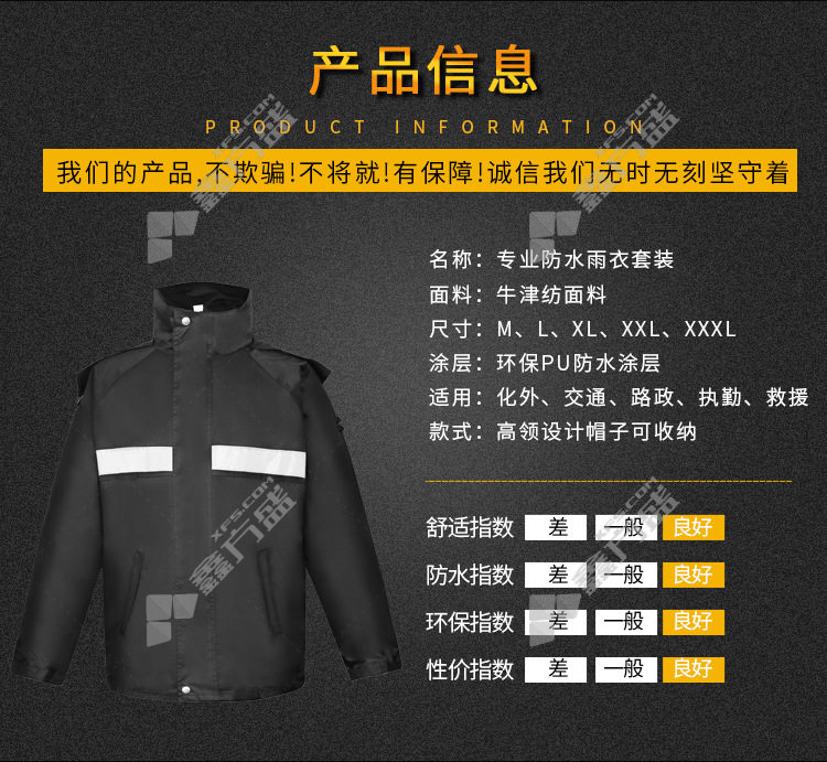 maiyou urban management duty split reflective raincoat and rain pants suit pongee modern simple style M code black pongee modern simple style /M code /black