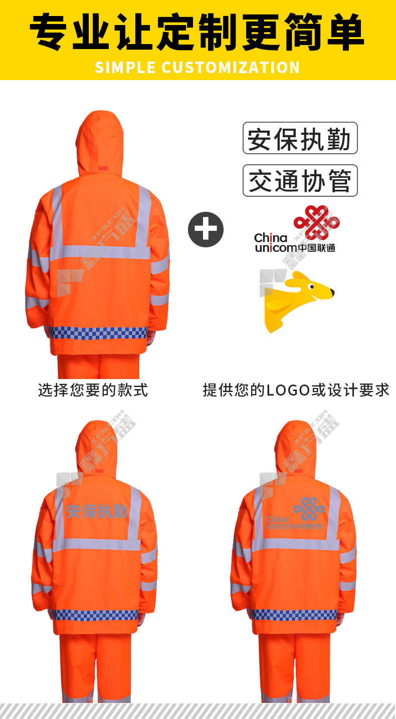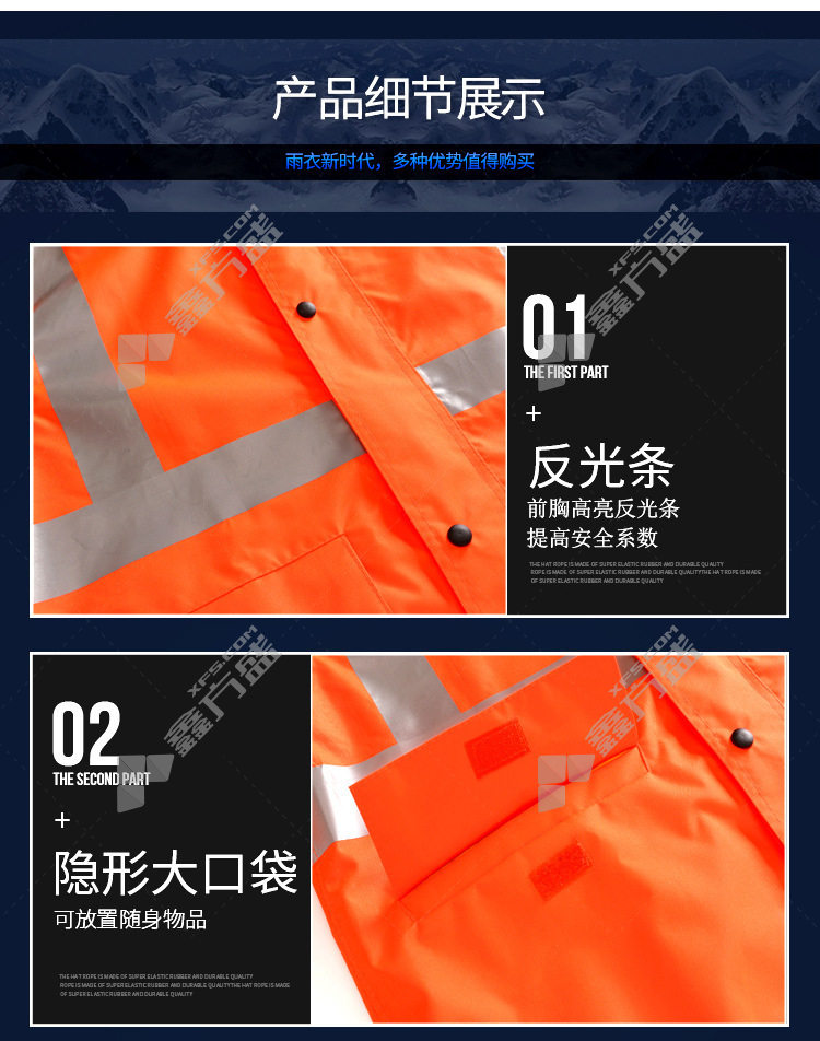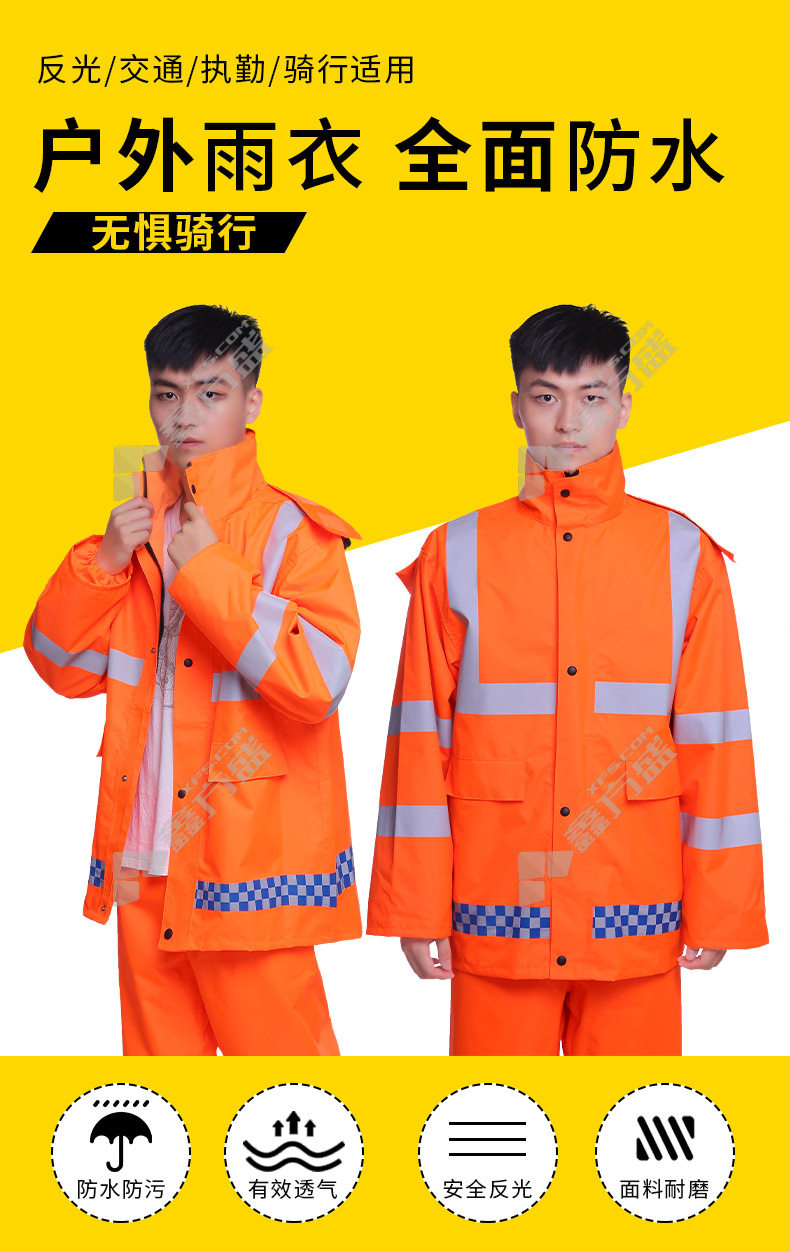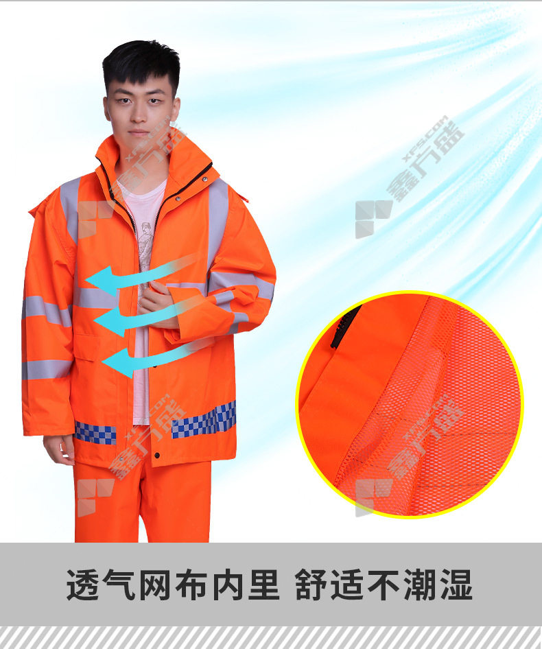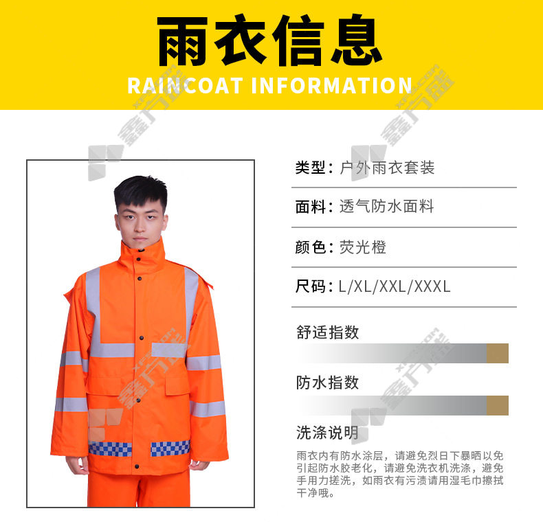 mike you environmental sanitation road patrol traffic reflective split duty raincoat oxford cloth 300 D split raincoat L fluorescent orange 300D split raincoat /L/fluorescent orange