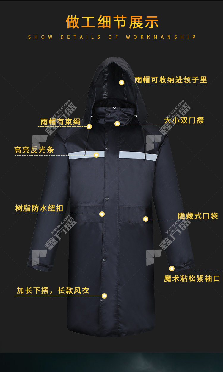 mcyou blackone-piece reflective long flood-proof road management waterproof labor protection raincoat pongee one-piece raincoat XXL code black pongee one-piece raincoat /M code /black