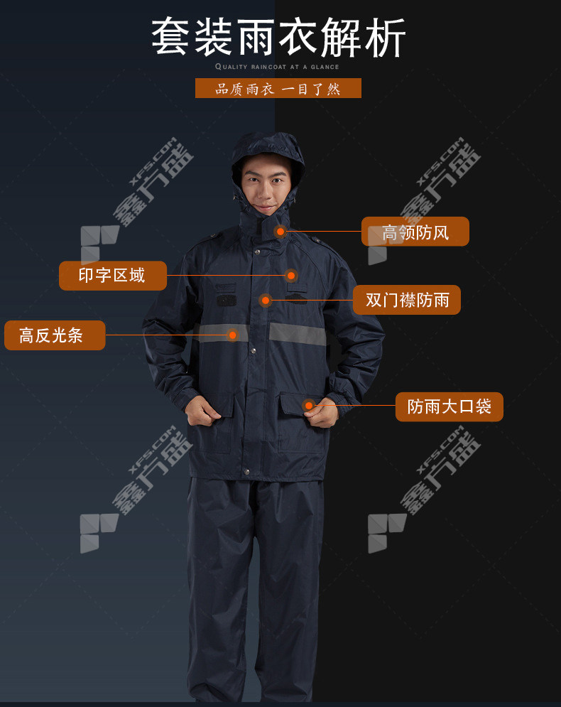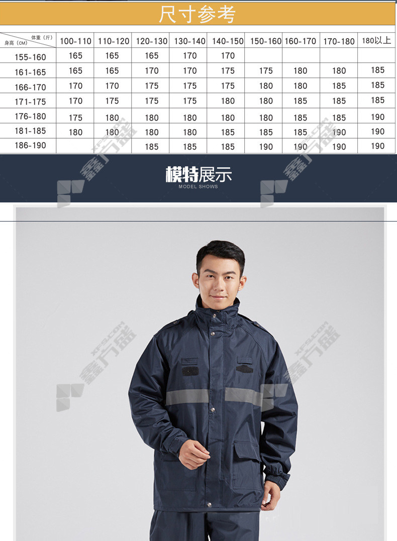 moufu outdoor duty adult split reflective raincoat 960 3 XL dark blue 960/M/dark blue