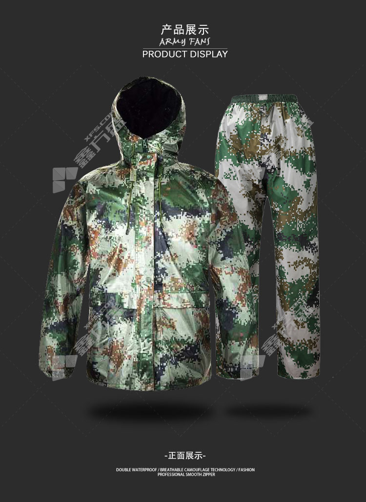 seeking good fortune with hat brimcamouflagesplit raincoat and rain pants set XL camouflage L/camouflage