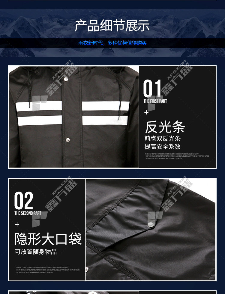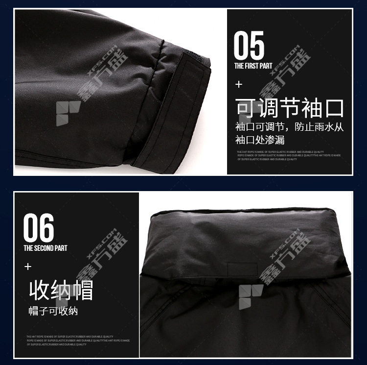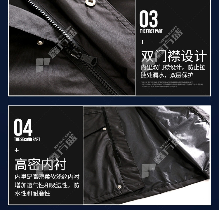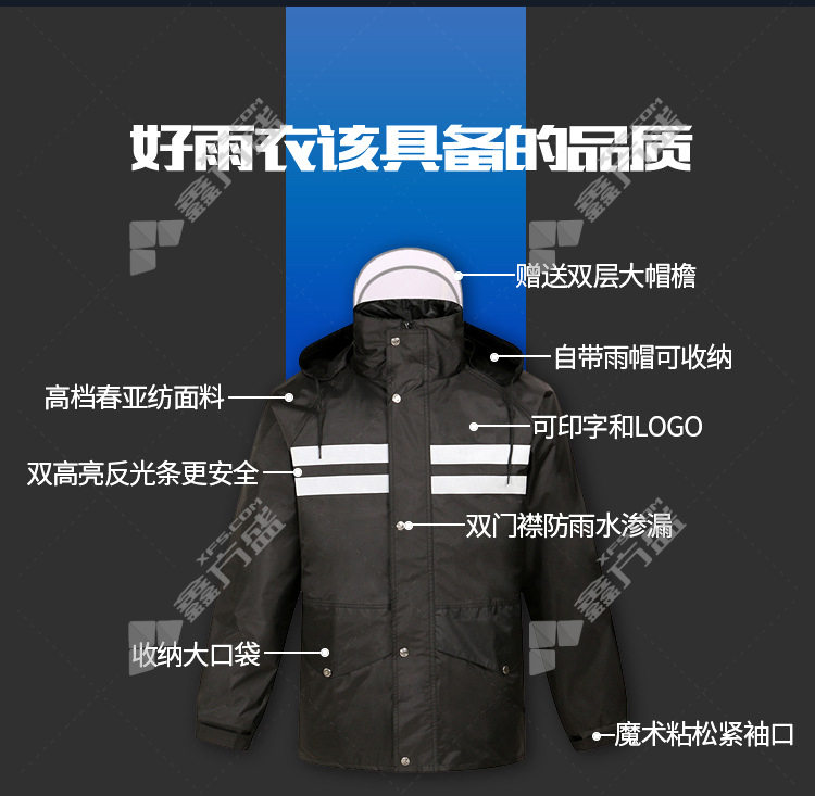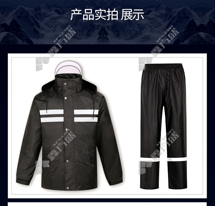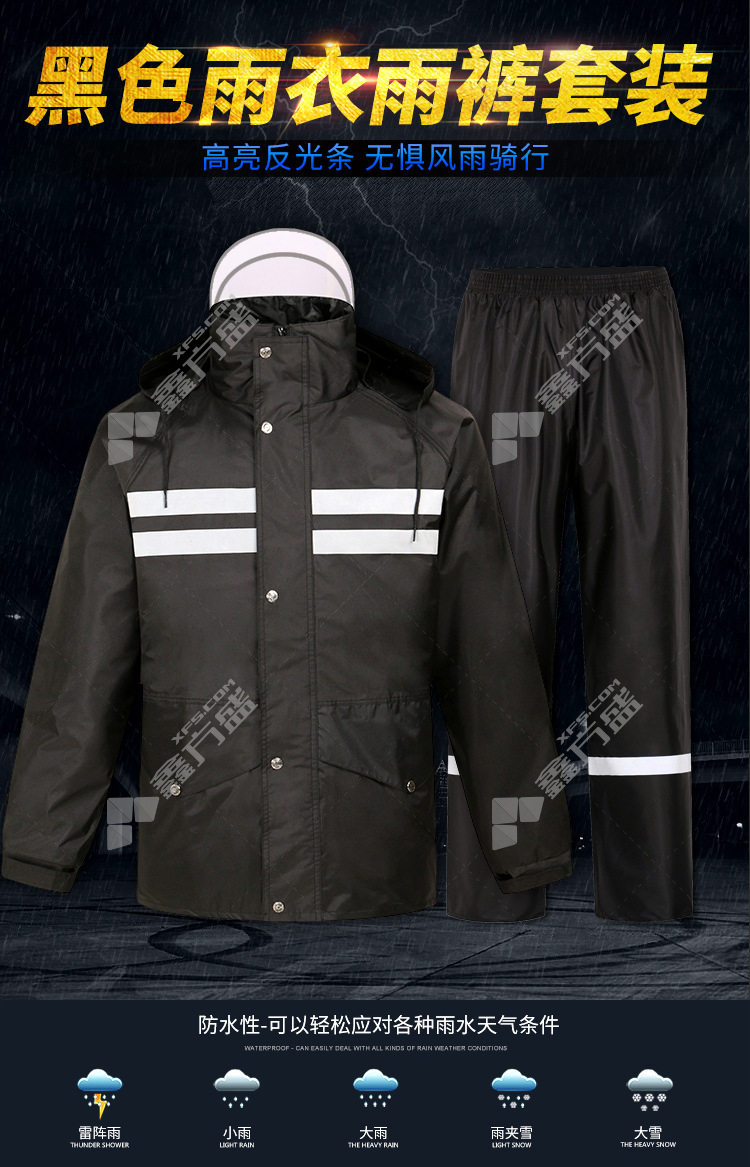 seek fortune ZQ001 reflective split raincoat and rain pants set 3 XL black L/black