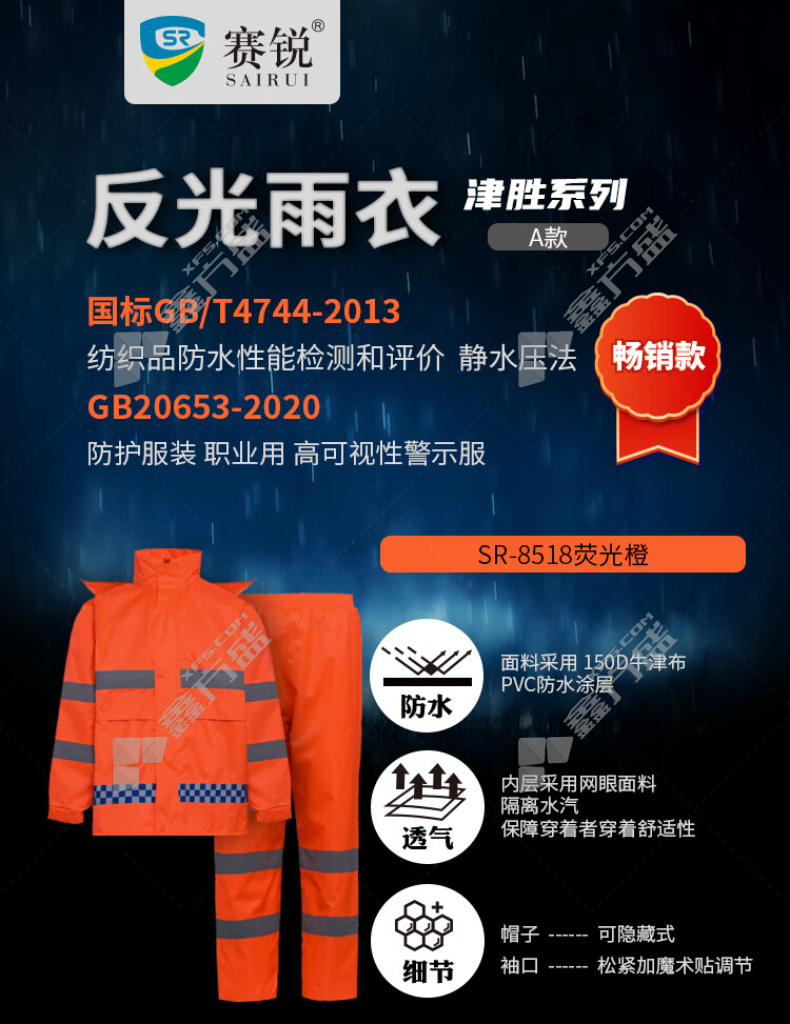 serui SR-8519 high warning raincoat set XL(175cm) fluorescent green M(165cm)/fluorescent green