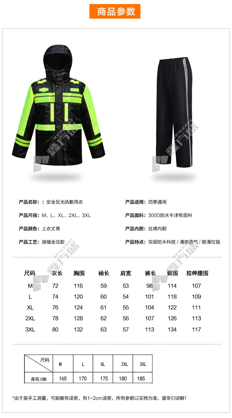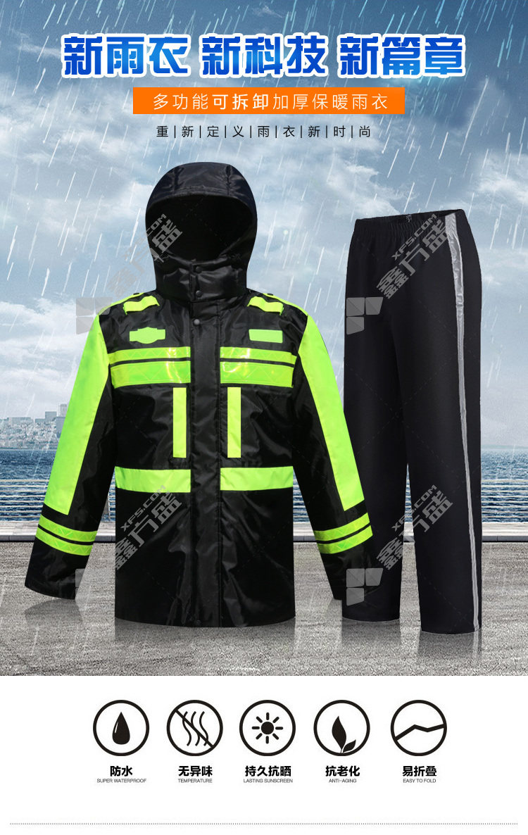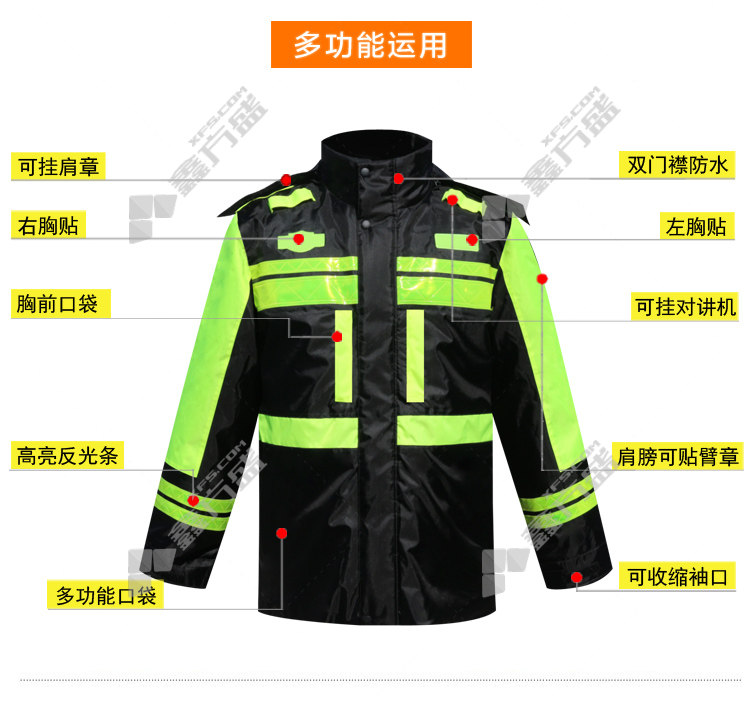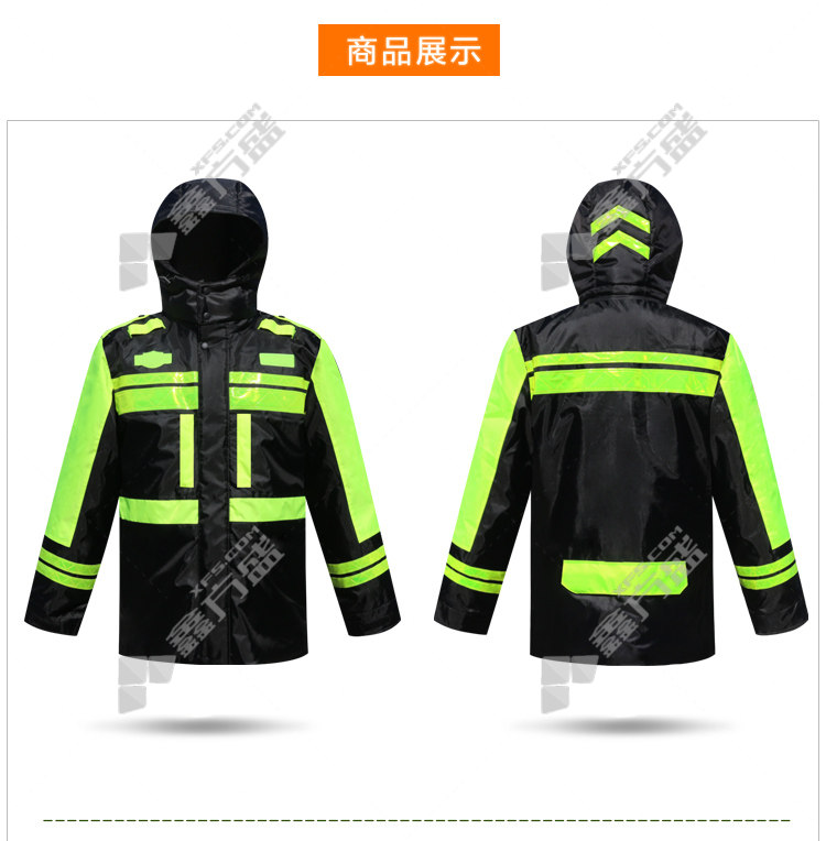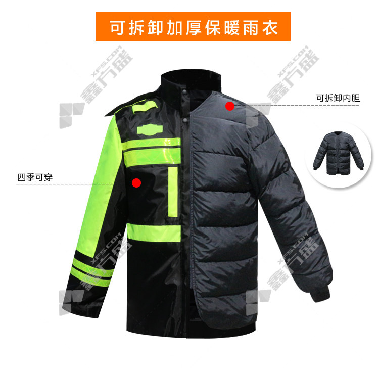 moufu 80172 safety reflective warm traffic duty raincoat 4 XL black S/black