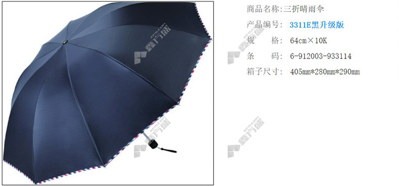 heaven Paradise three-fold umbrella black upgraded version 3311 EL 64cm×10K no specifications