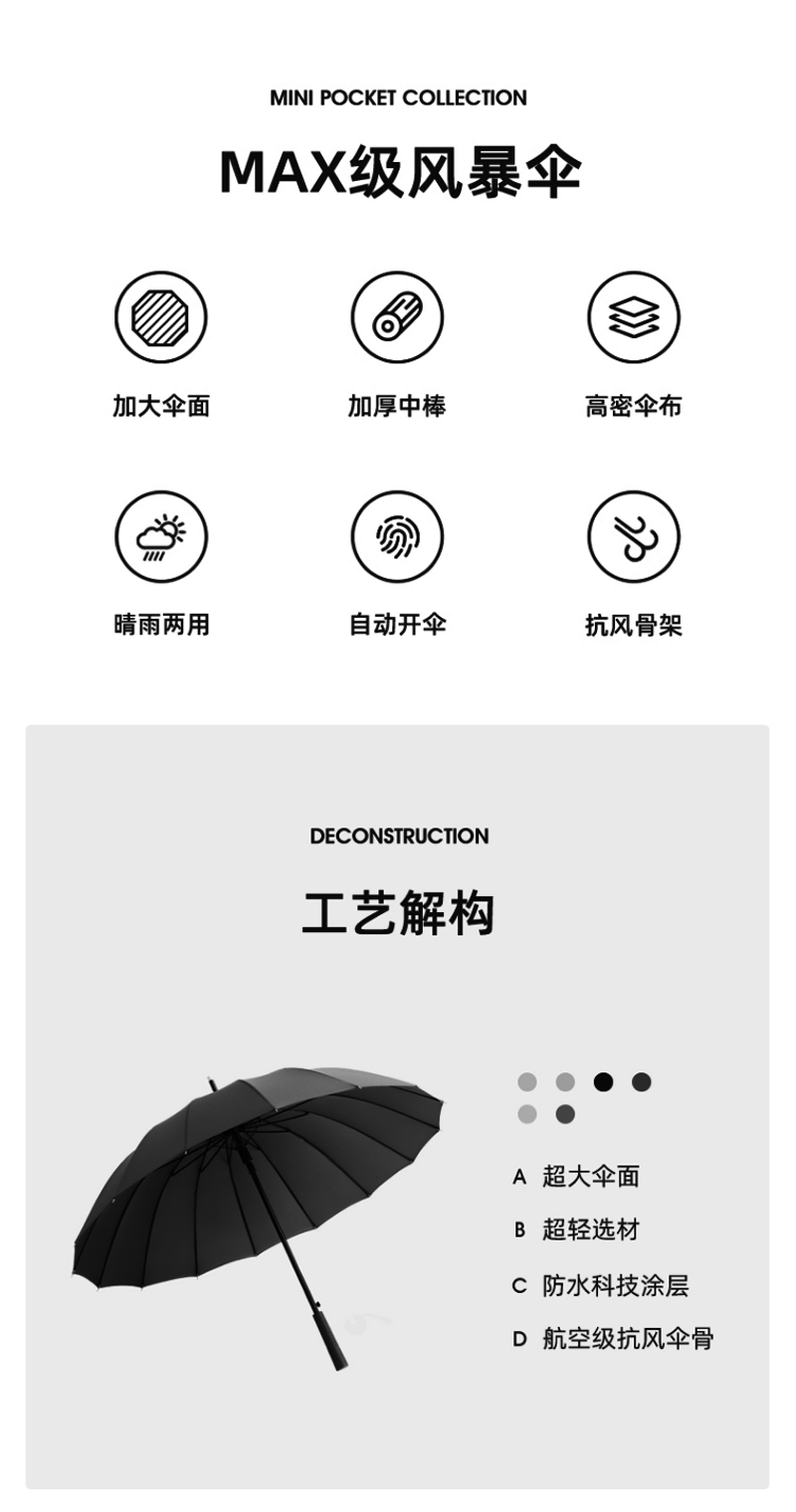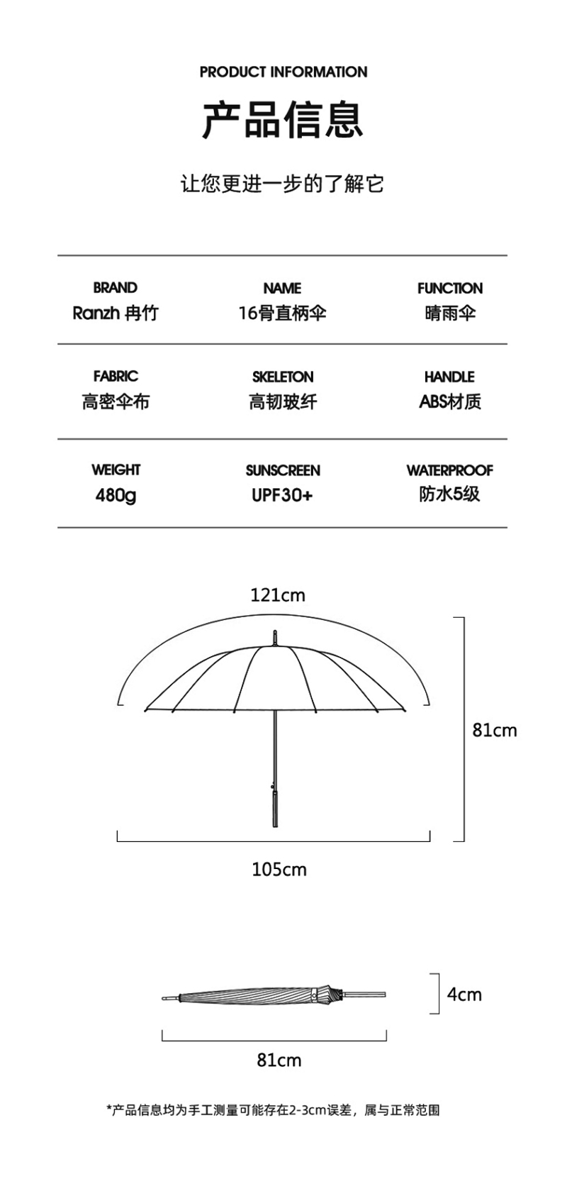 ranzhu long handle umbrella straight handle umbrella 16 ribs black no specifications