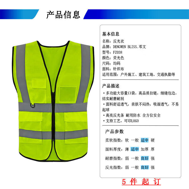 DENGWEN BLISS. dengwen high-brightness fluorescent multi-pocket reflective vest reflective clothing safety clothing FZ038 one-size-fits-all reflective clothing supports customization (unit: pieces ) FZ038 no specifications