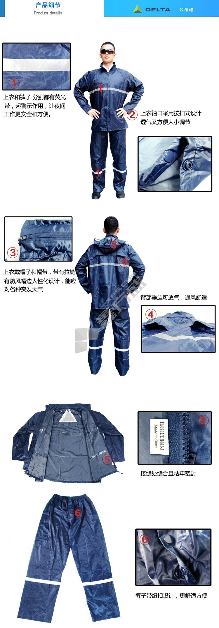 delta DELTAPLUS split raincoat 407004- L EN400RE polyester split raincoat navy blue no specifications