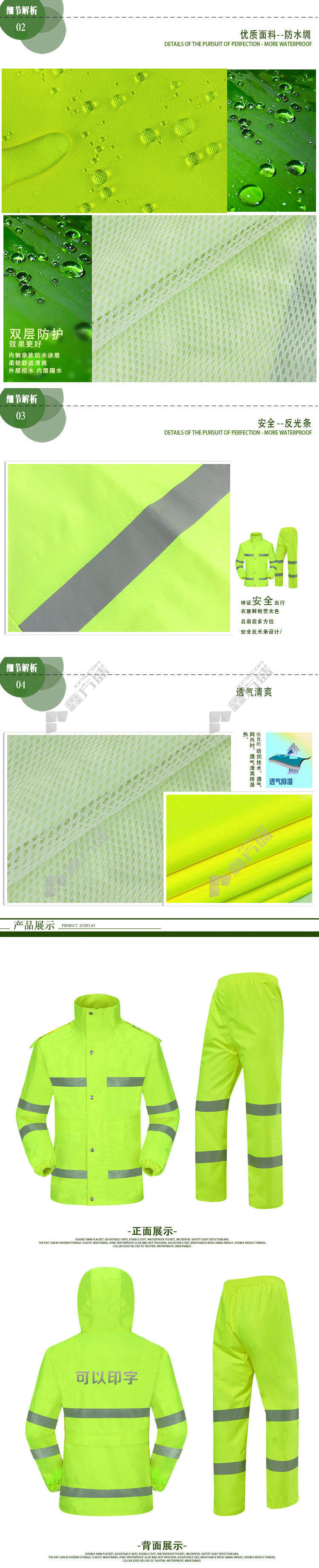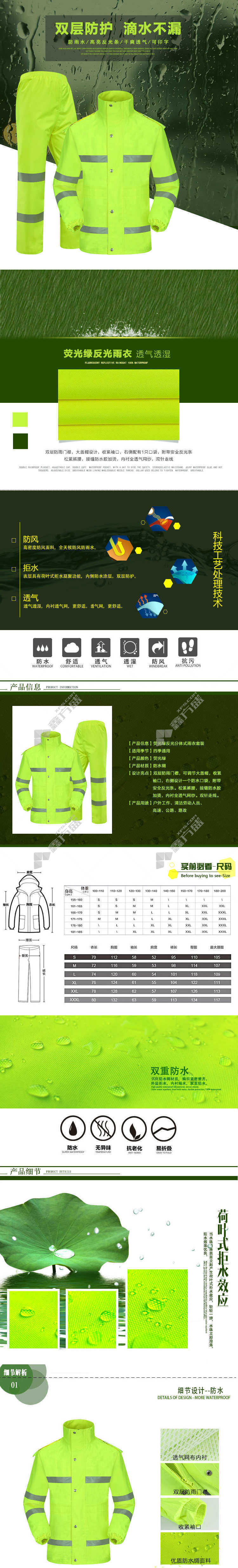 seek fortune CNMF fluorescent green safety reflective raincoat fluorescent green YGL01 L170 M165