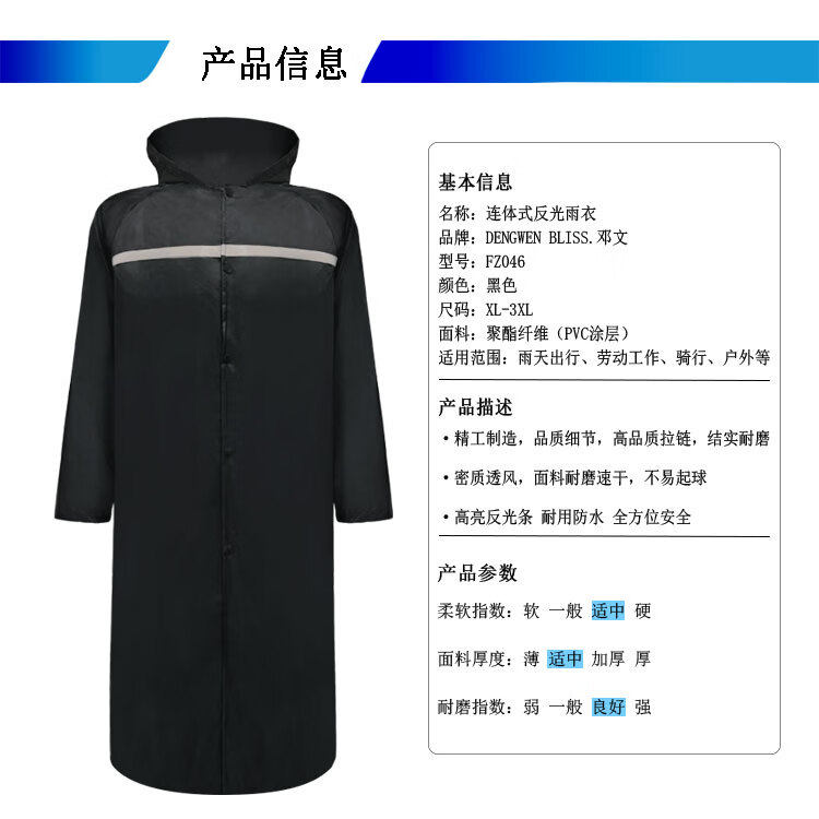 DENGWEN BLISS. deng wen one-piece reflective raincoat long outdoor labor protection duty waterproof poncho FZ046 2XL yard (unit of calculation: pieces ) FZ046 no specifications