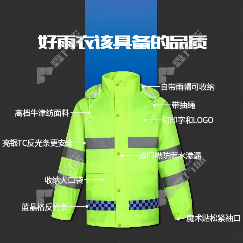 YW split reflective raincoat split black M-L-XL-XXL-XXXL-XXXXL