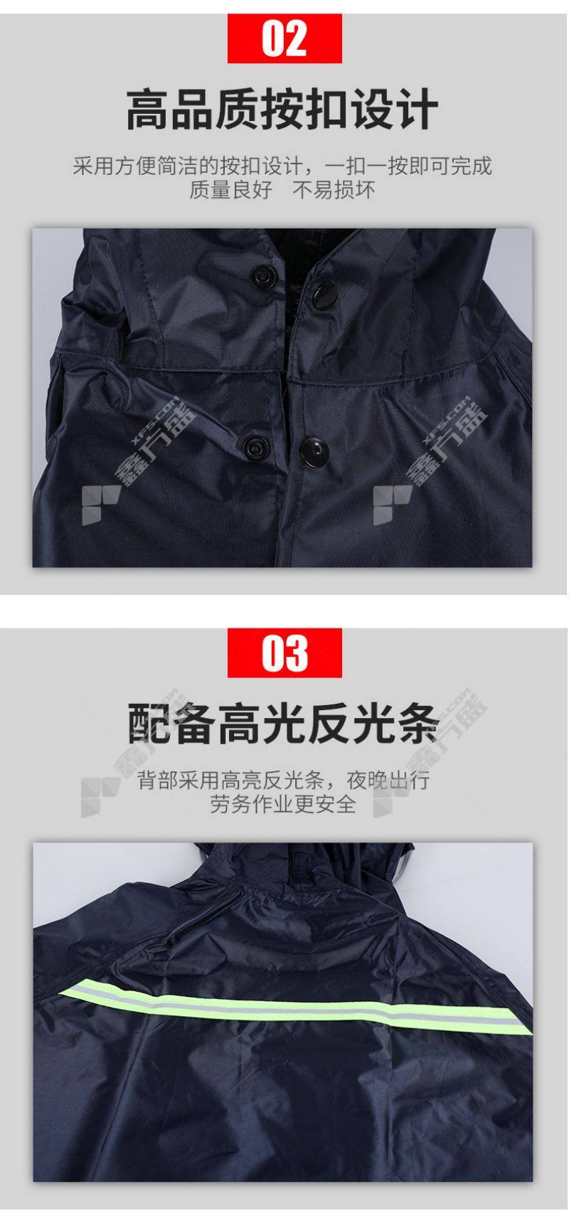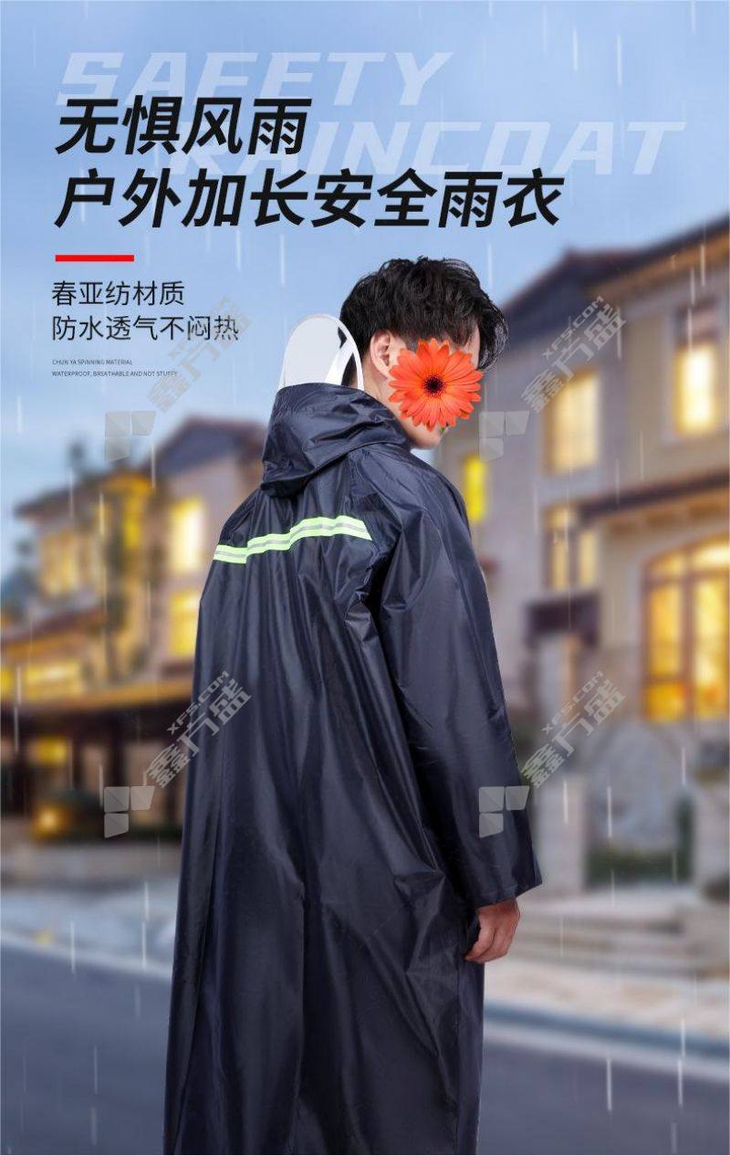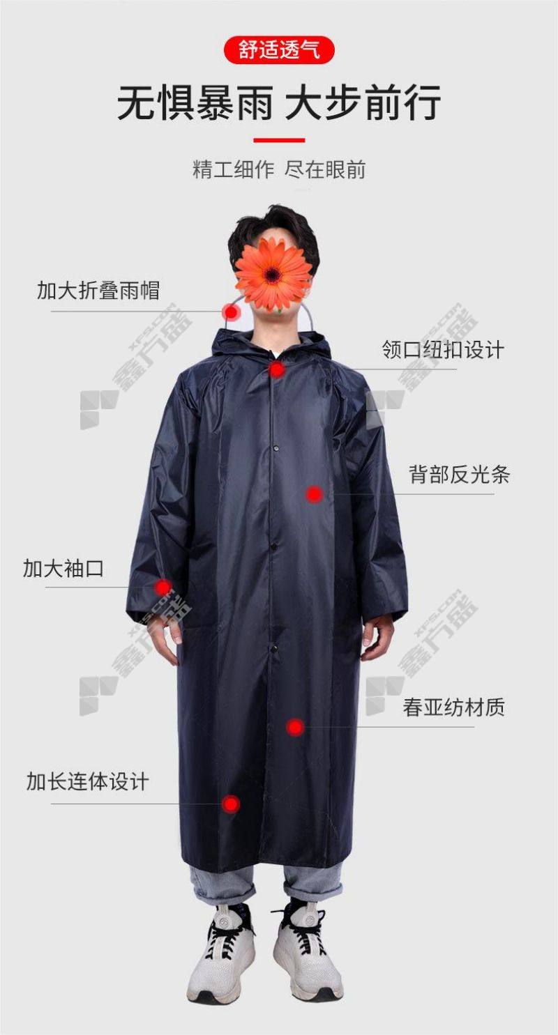 junyu SF-90 reflective long raincoat one-piece outdoor work PVC thickened waterproof raincoat extra large (175-185 cm) navy blue large size (165-175 cm)