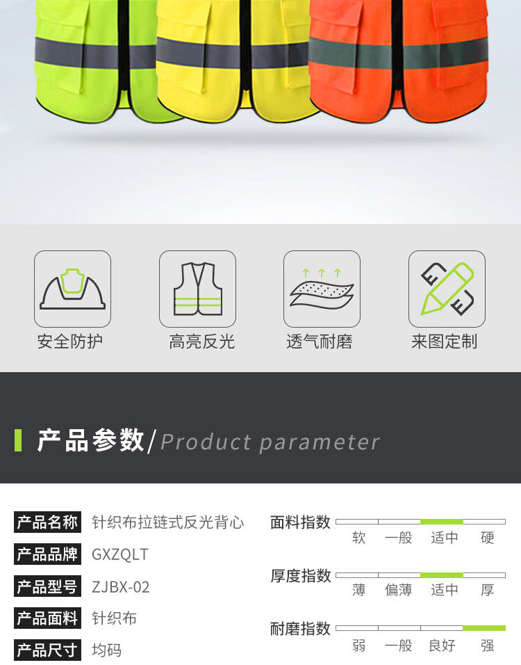 GXZQLT knitted zippered reflective vest ZJBX-02 3 colors available, one size fits all, customizable LOGO( unit: pieces) ZJBX-02 no specifications