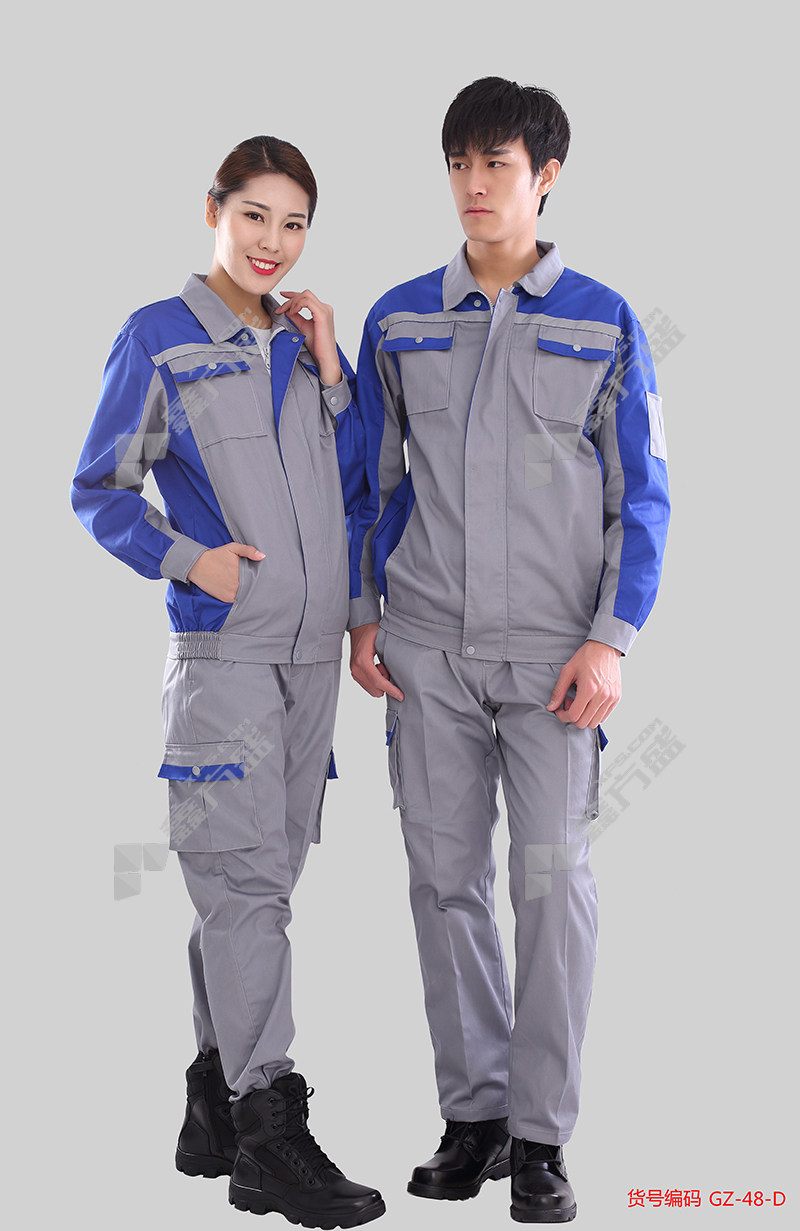yilu qianqiu GZ-48-D spring and autumn polyester-cotton gauze card long-sleeved work clothes suit GZ-48-D XXXXL sapphire GZ-48-D/M/light gray