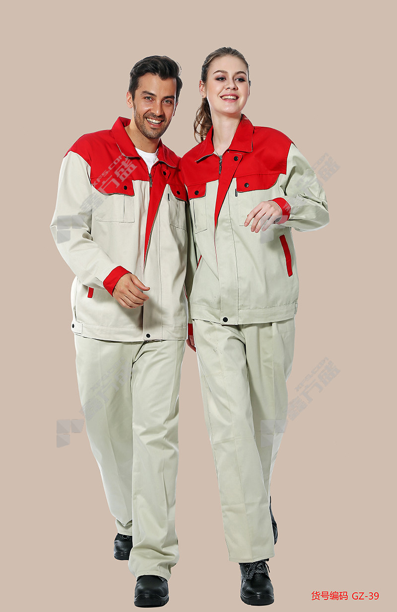 yilu qianqiu GZ-39 spring and autumn polyester-cotton gauze card long-sleeved work clothes suit GZ-39 XXL bright red GZ-39/M/off white
