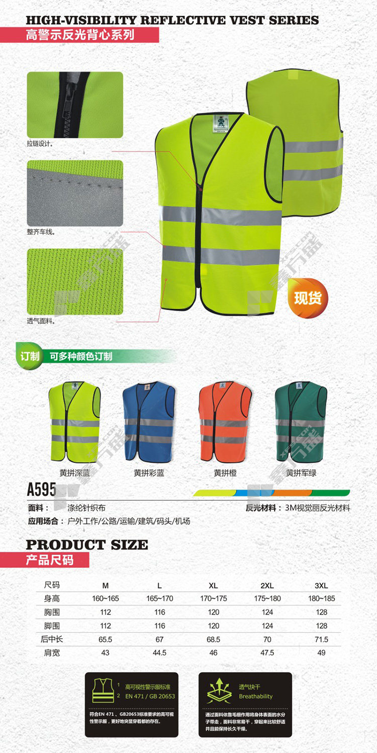 uncle an reflective vest LJJ-A595 XXL fluorescent yellow JJ-A595 M/fluorescent yellow /JJ-A595