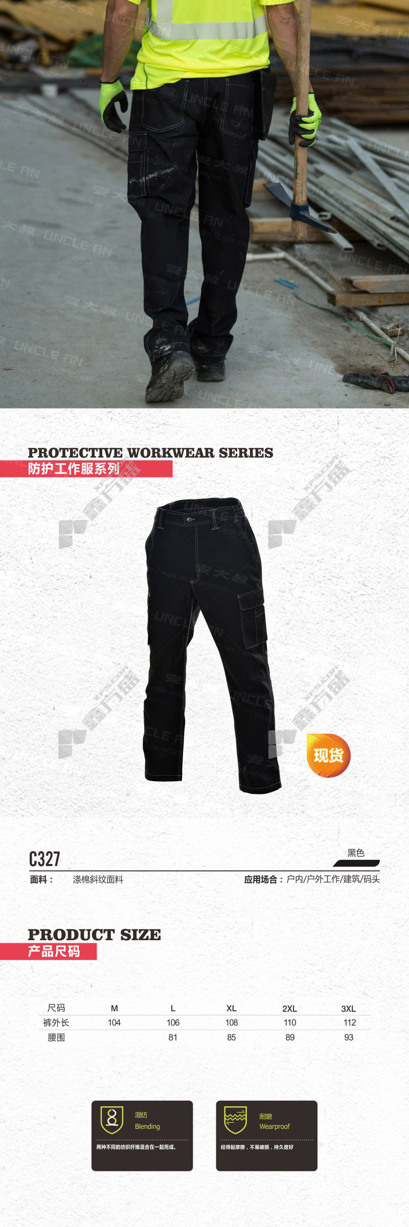 uncle an casual work pants JJ-C327 XXL black JJ-C327/S/black