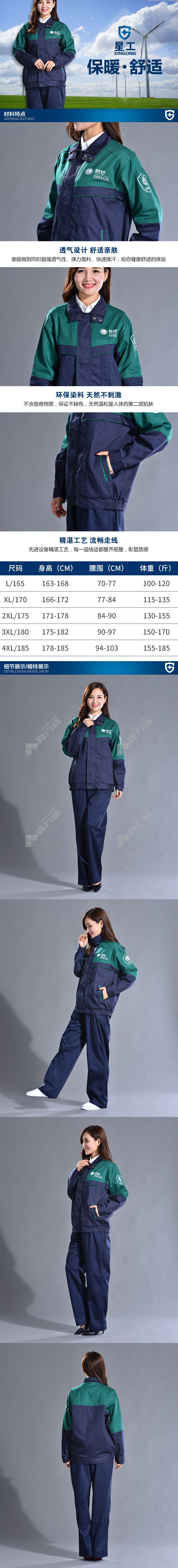 xinggong state grid work clothes pure cotton thickened work clothes set XL teal XGZ-45 L/teal /XGZ-45